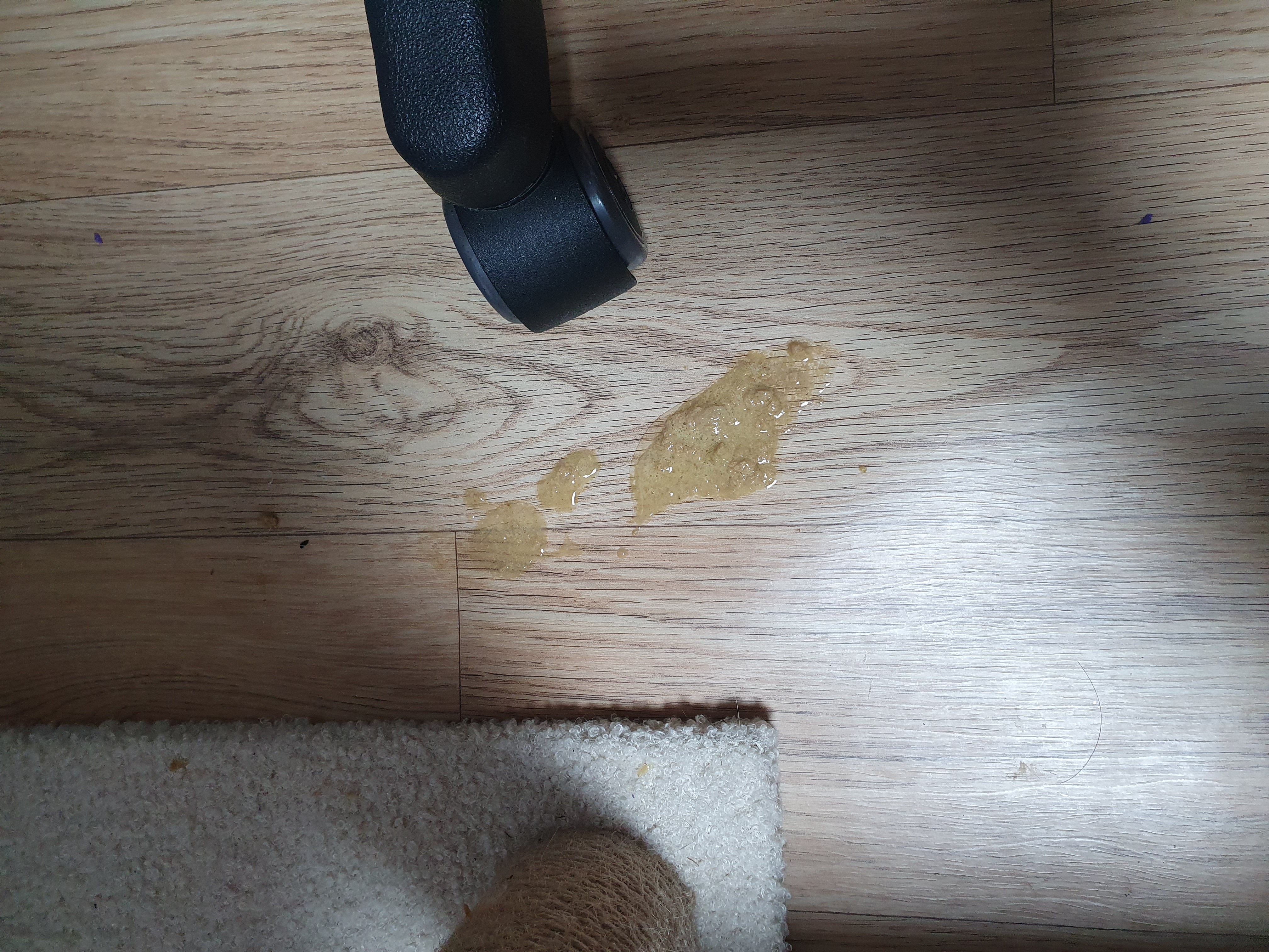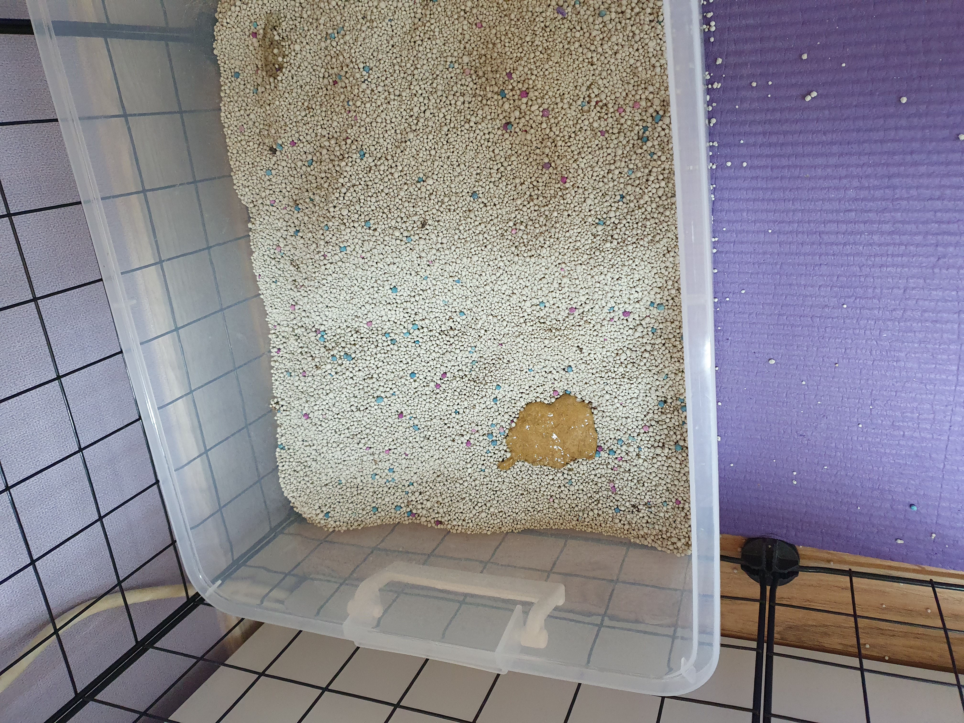 이번에는 하얀토를 했습니다. 이것도 걱정할 정도는 아니라고 합니다. 흰색토는 구르밍하다가 털을 먹었을 때 하는 경우도 있다고 합니다.