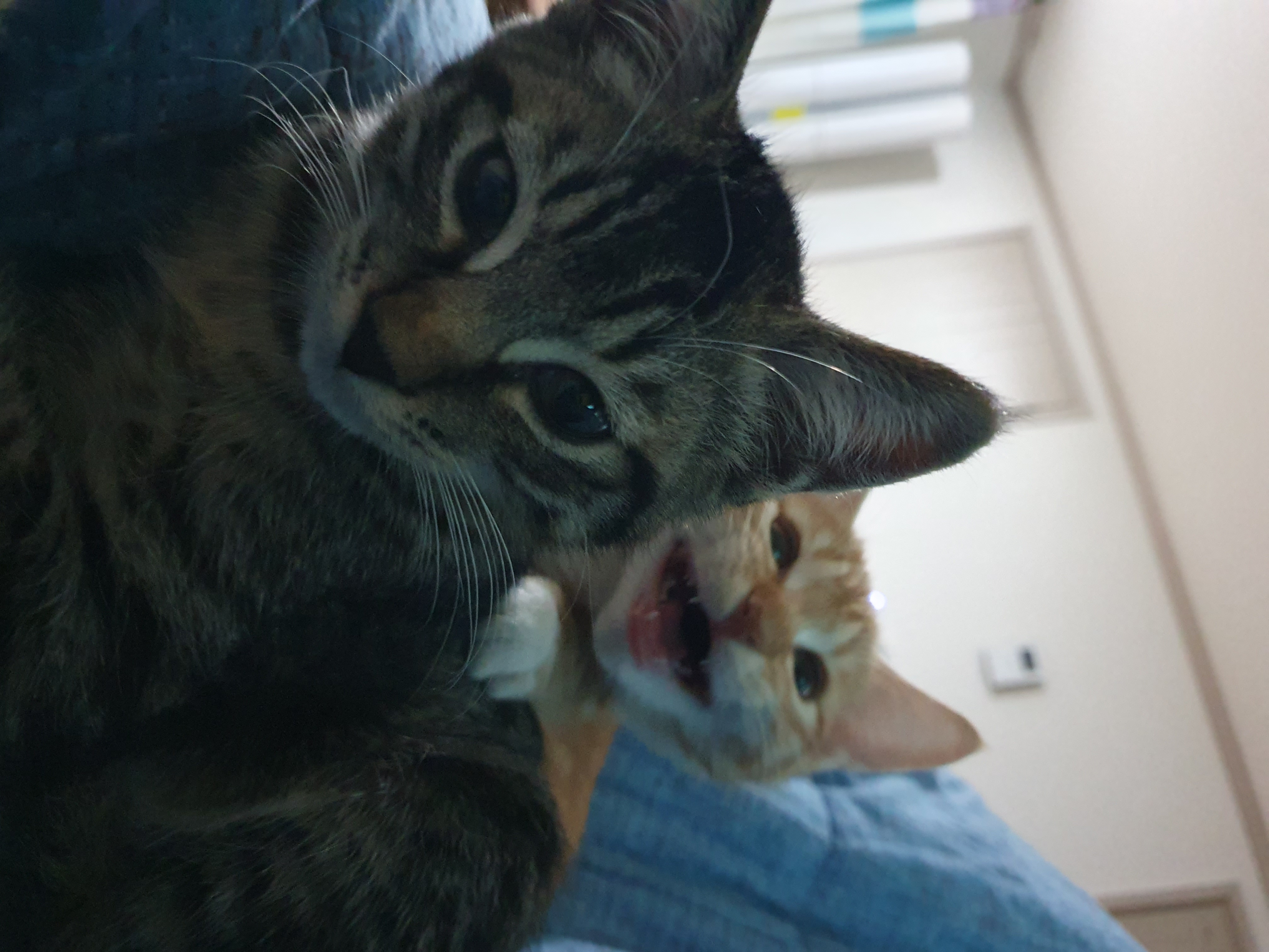 송이(고등어태비)와 새옹이(치즈태비)