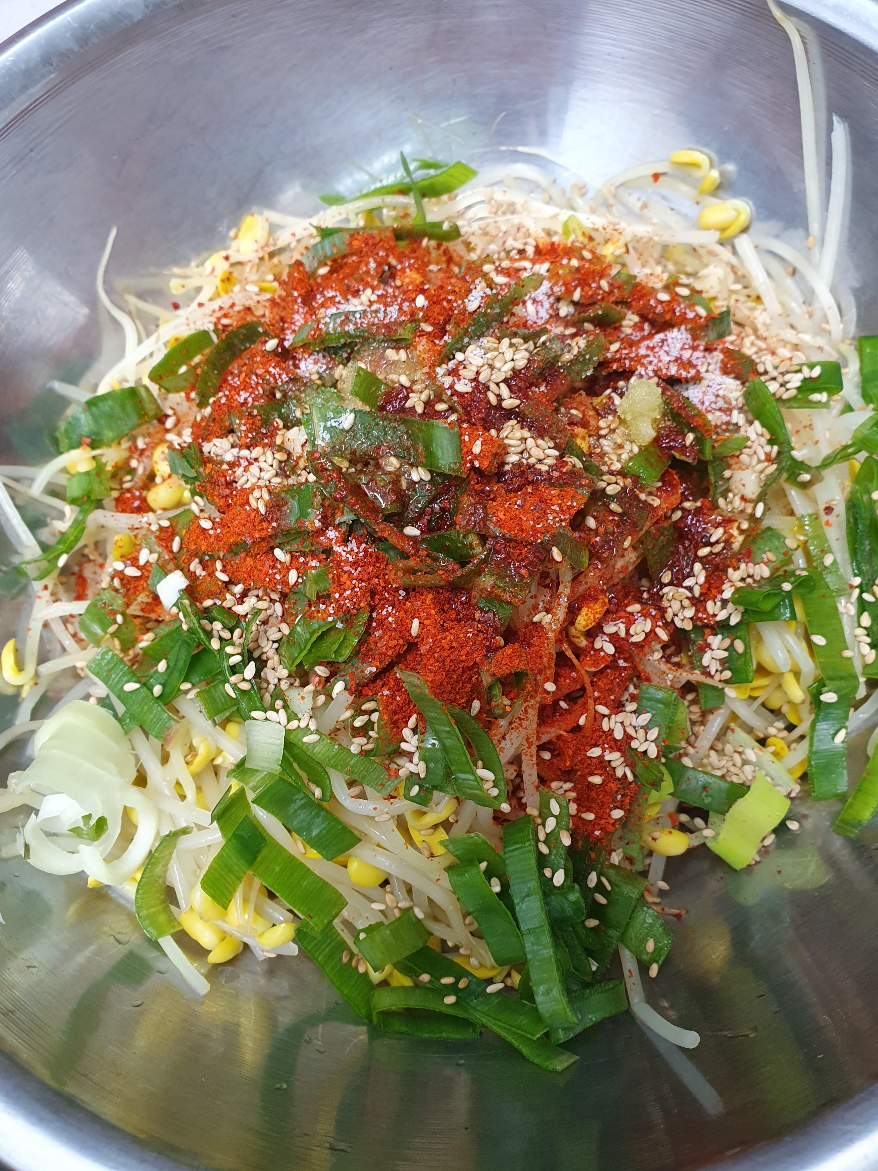 콩나물반찬이 만들어집니다. 소금은 적게 넣어서 조금 싱겁기는 합니다.