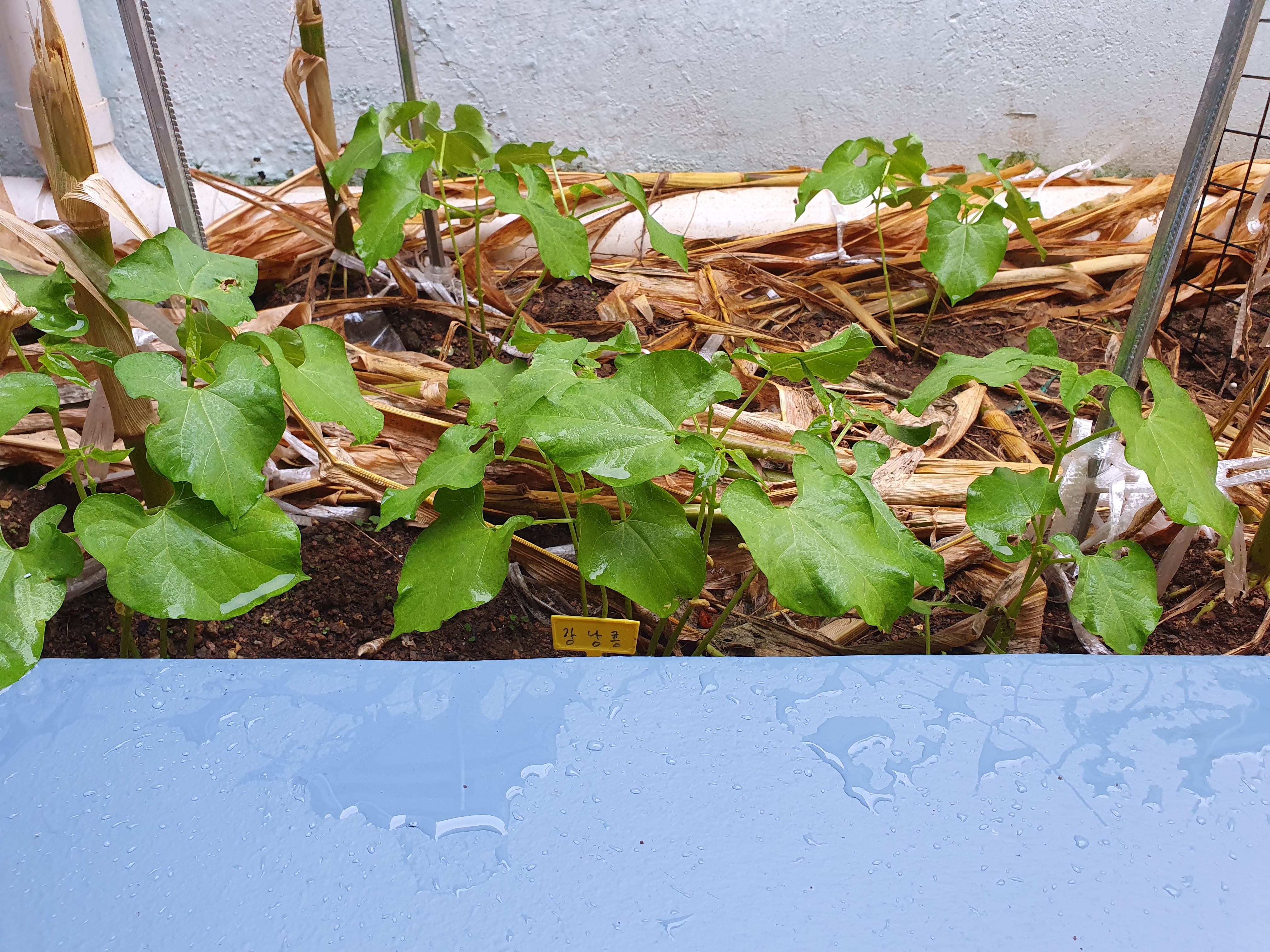 8월 하순인데도 낮에는 무더위, 밤에는 열대야입니다. 강낭콩잎 솎아주기 1시간 정도 했는데 온몸에 땀이 흥건합니다.