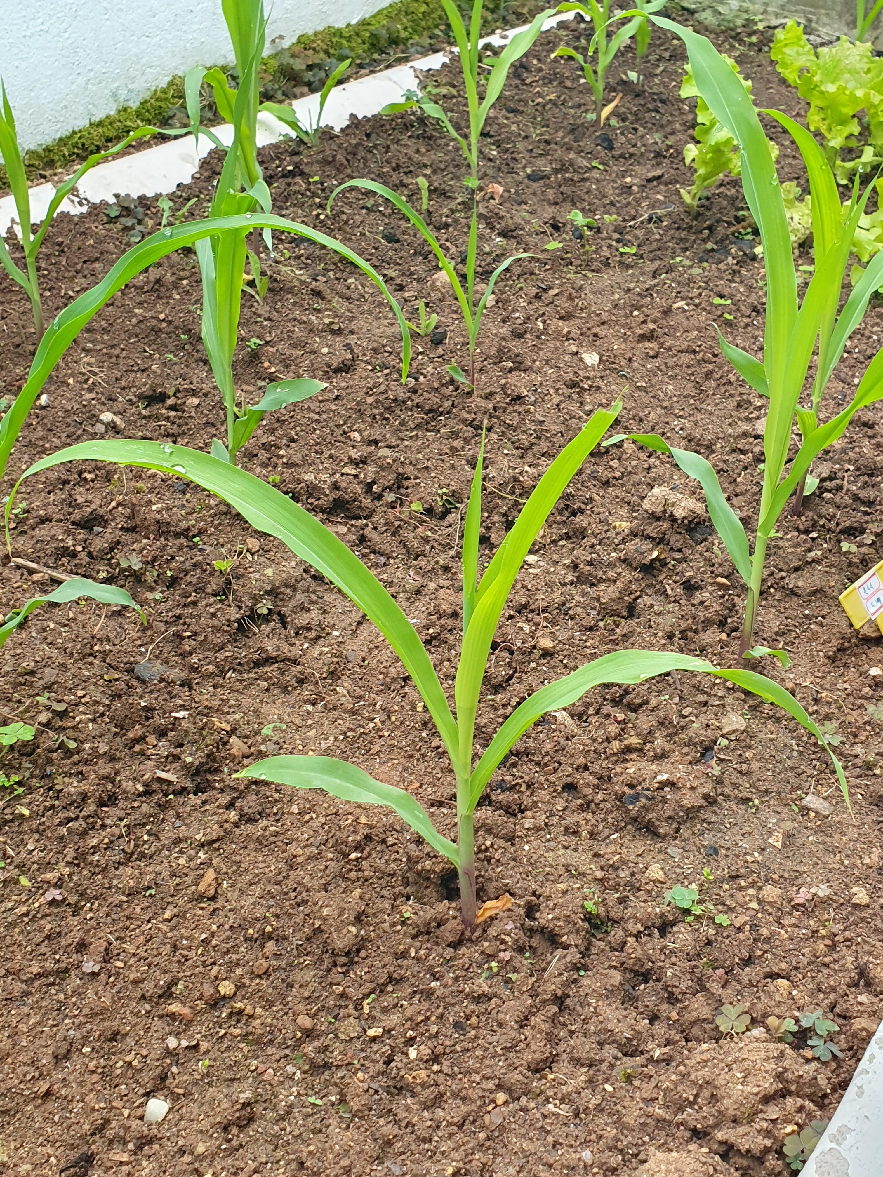 5월 29일 수요일에는 옥수수 31개 심은 것 중에서 처음으로 잎이 4개 나온 옥수수들이 4개나 되었습니다. 옥수수들은 참 성장이 빠르다는 것을 느끼네요.