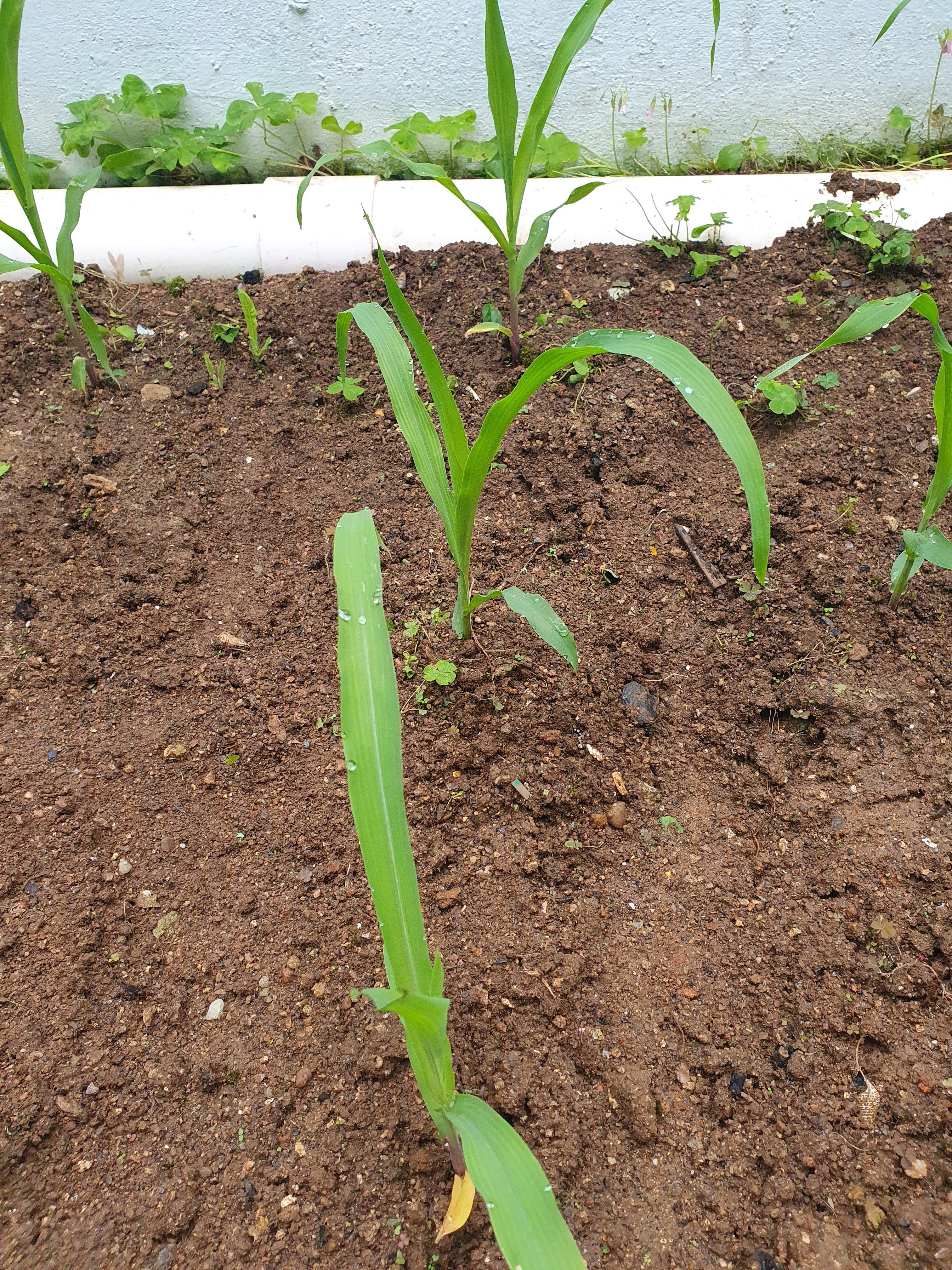 요소를 뿌리면 더 잘 자란다고 합니다. 옥수수가 무릎 높이까지 자라면 한 번 요소 비료를 줄까 생각 중입니다.
