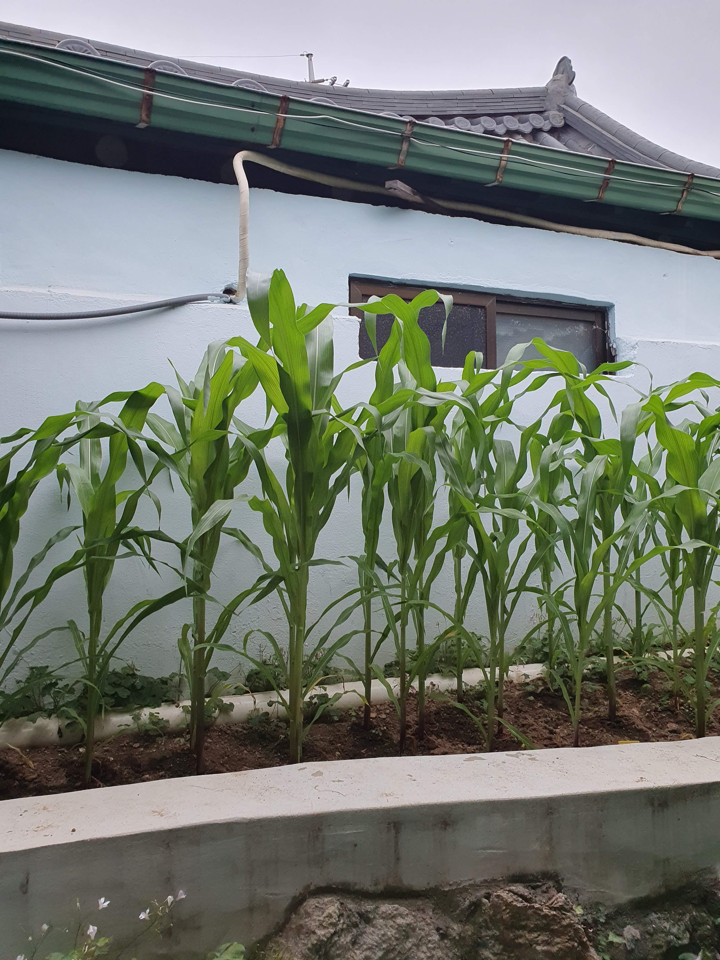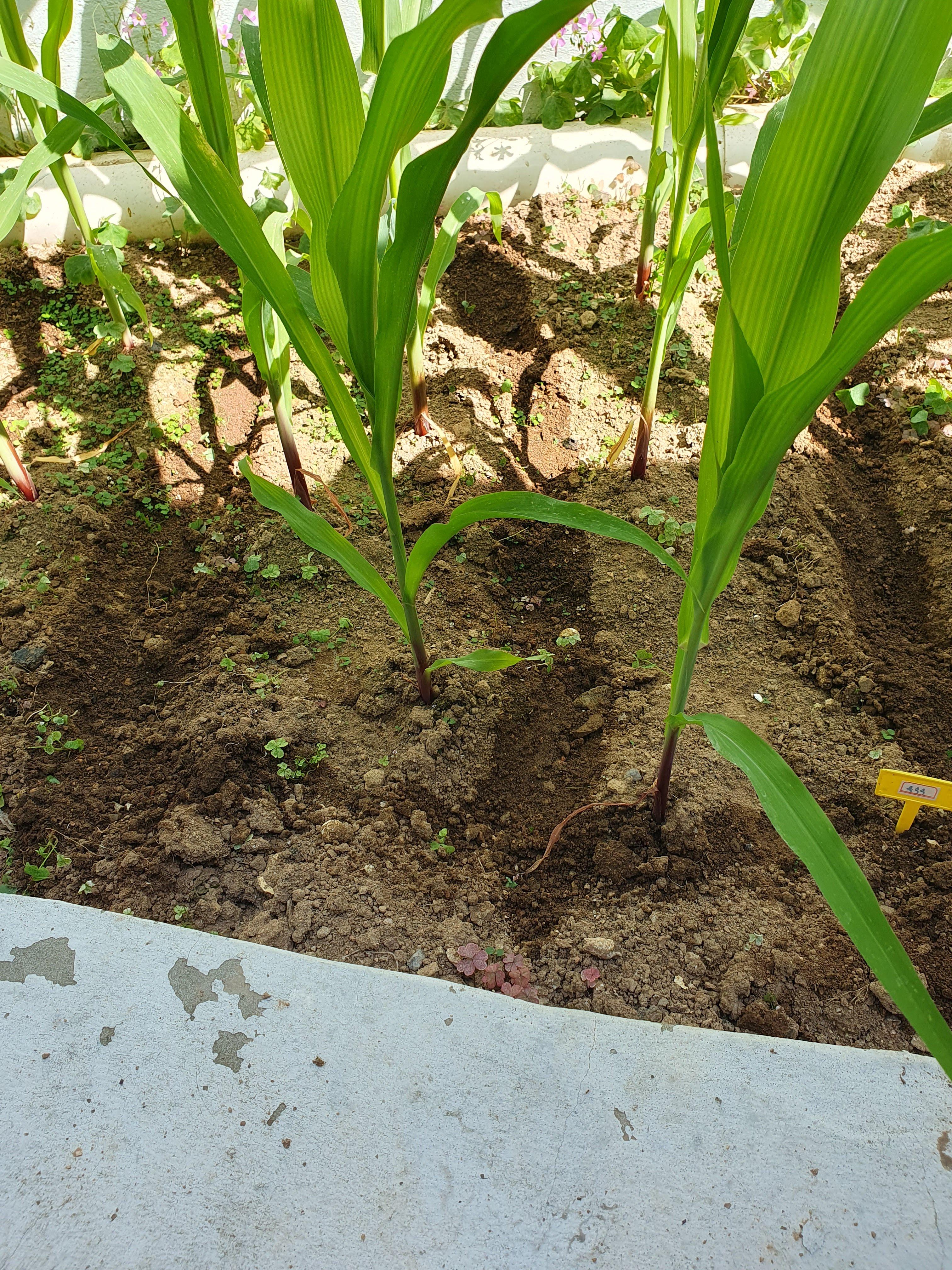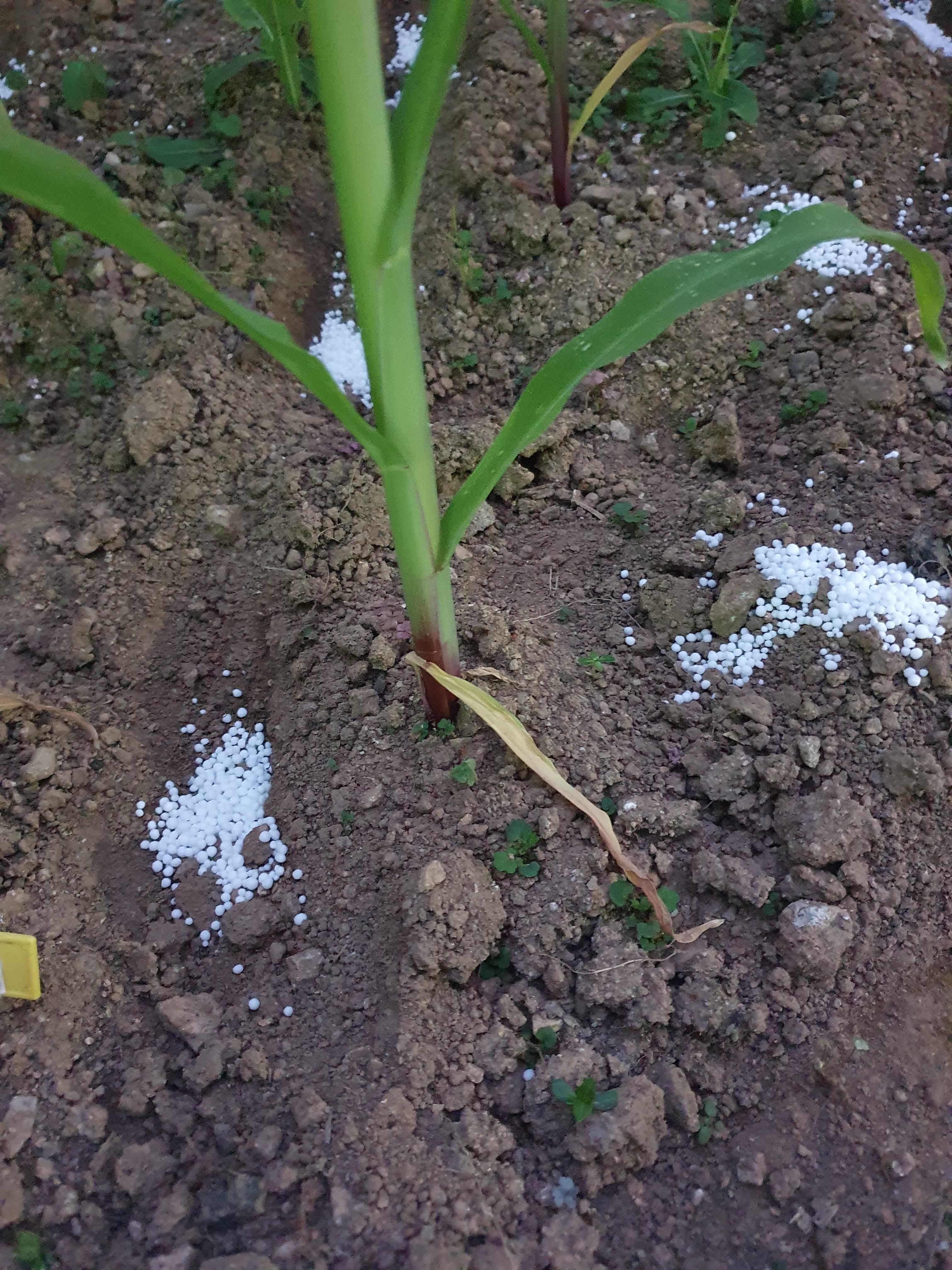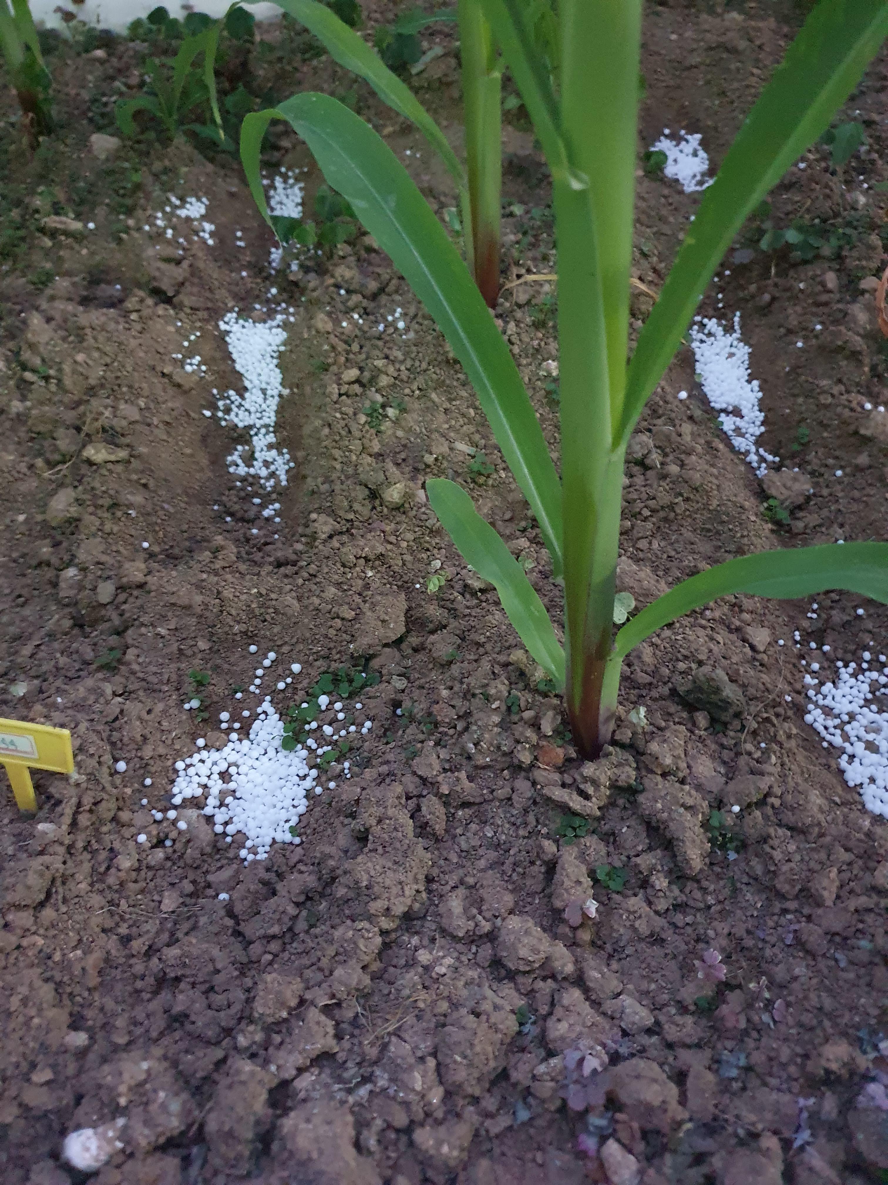 6.16. 에는 장마 전에 비료를 줄 준비를 하였습니다. 옥수수잎이 7~8장이 났을 때, 요소 비료를 주면 좋다고 하네요. 저희집 옥수수들도 잎이 7장 정도 났으니까 비료를 줄 준비를 해야겠습니다. 비료를 준 다음에는 물을 많이 줘야 한다고 합니다. 그래서 장마 전에 비료를 주면 좋다고 하는군요. 비료는 옥수수 뿌리에 직접 주지 말고 좀 떨어져서 밥 한 숟가락 정도 주고, 물을 줘서 요소 비료가 땅에 흡수되게 하는 게 중요하다고 합니다.