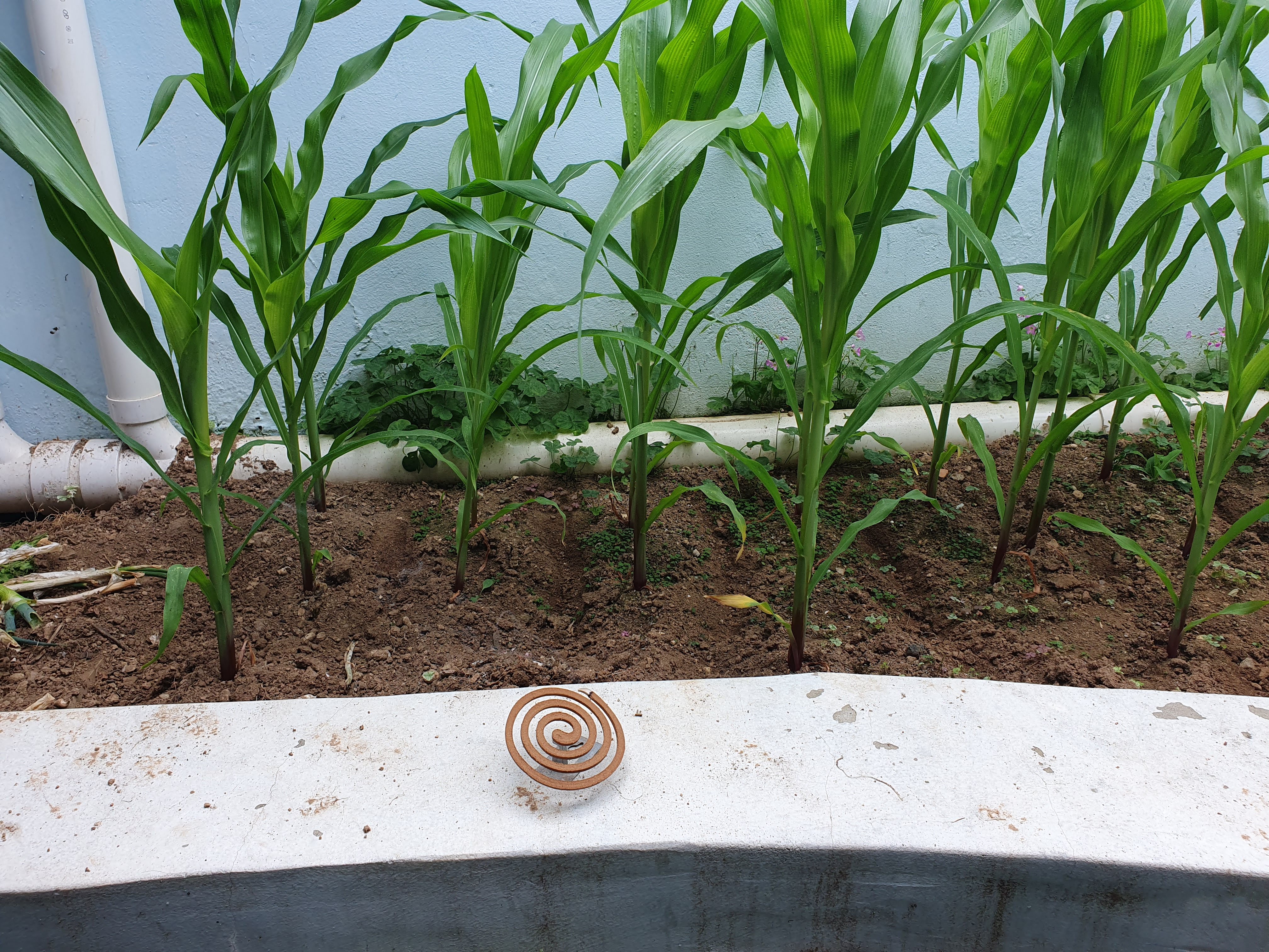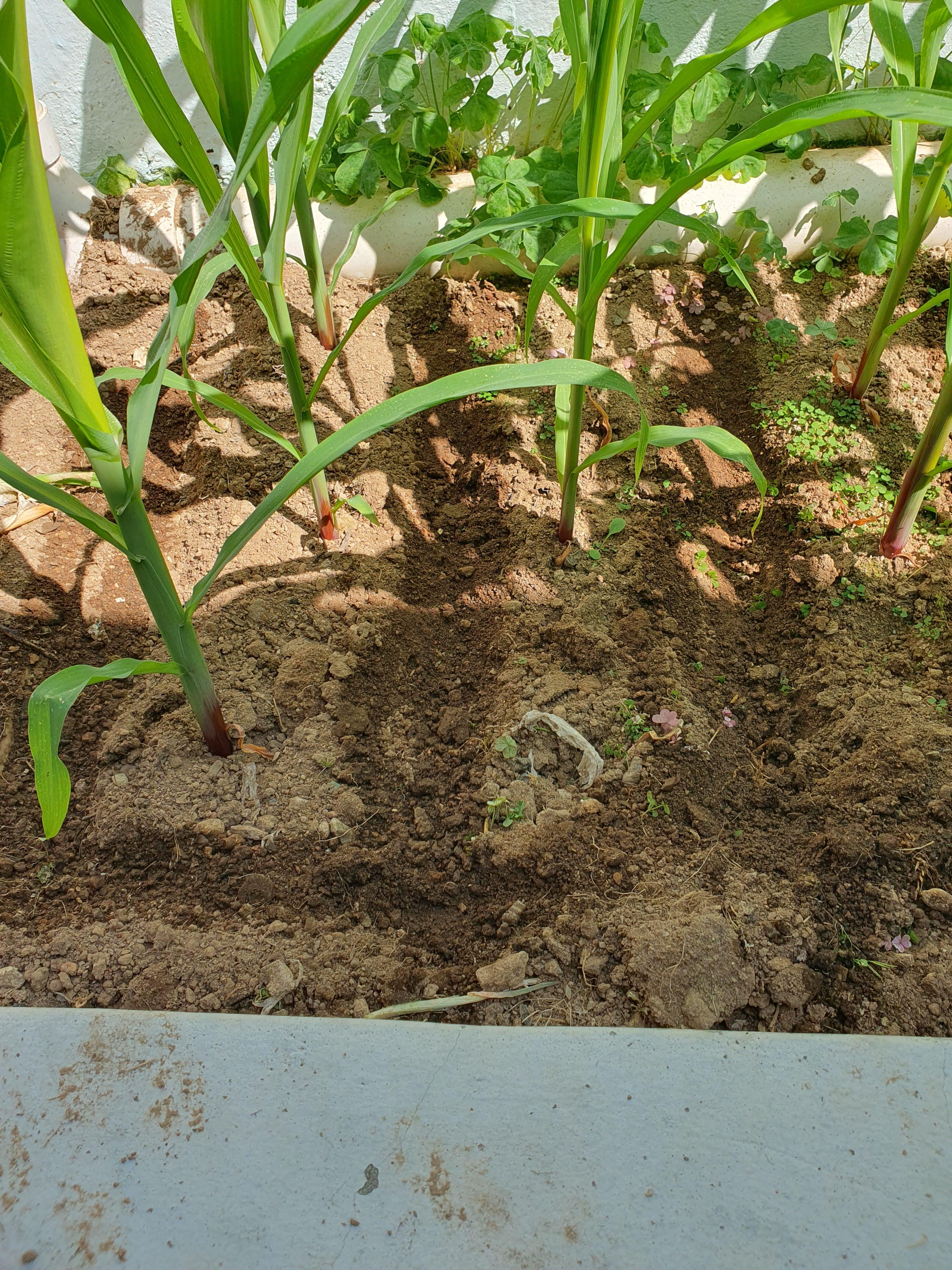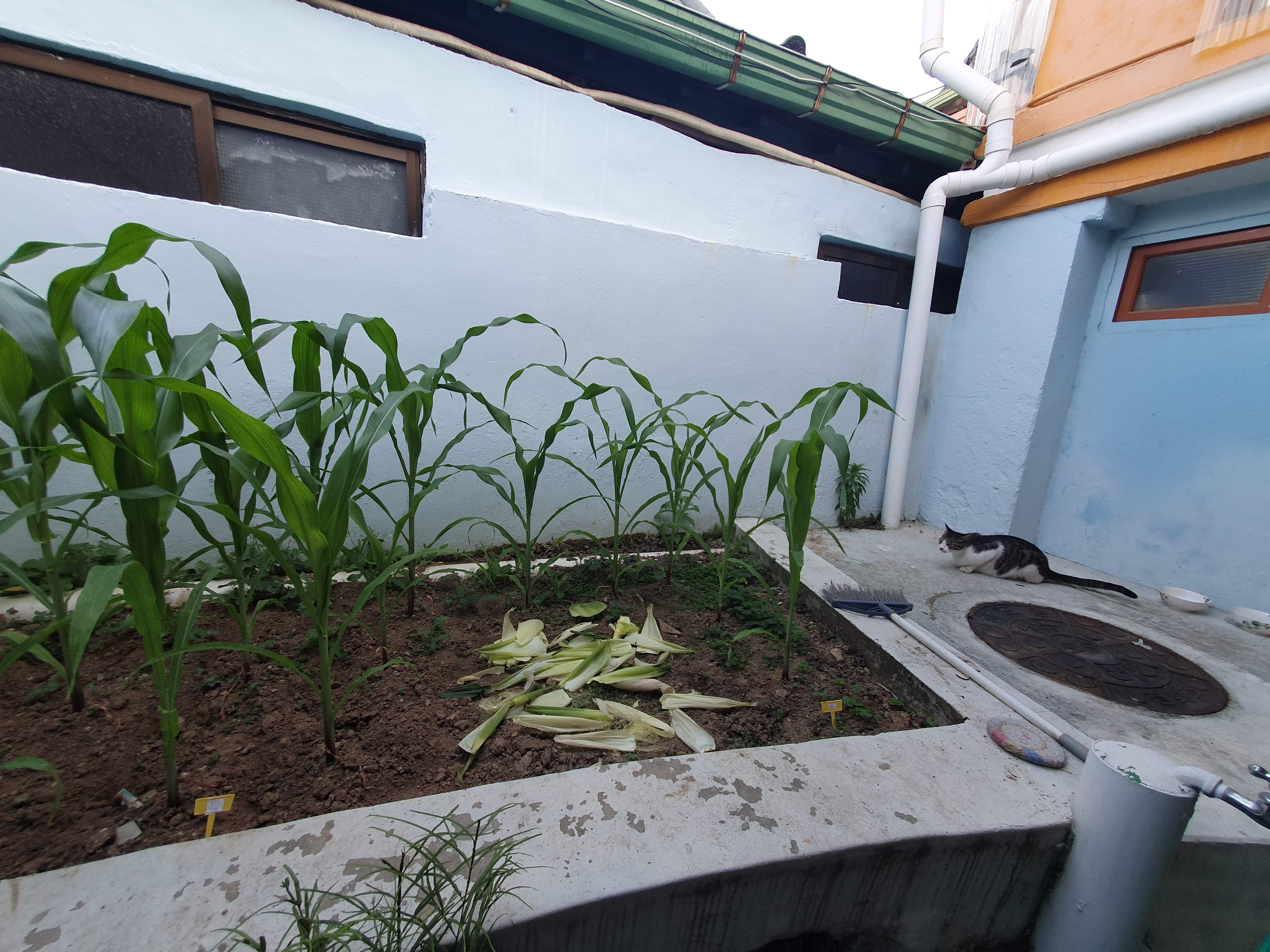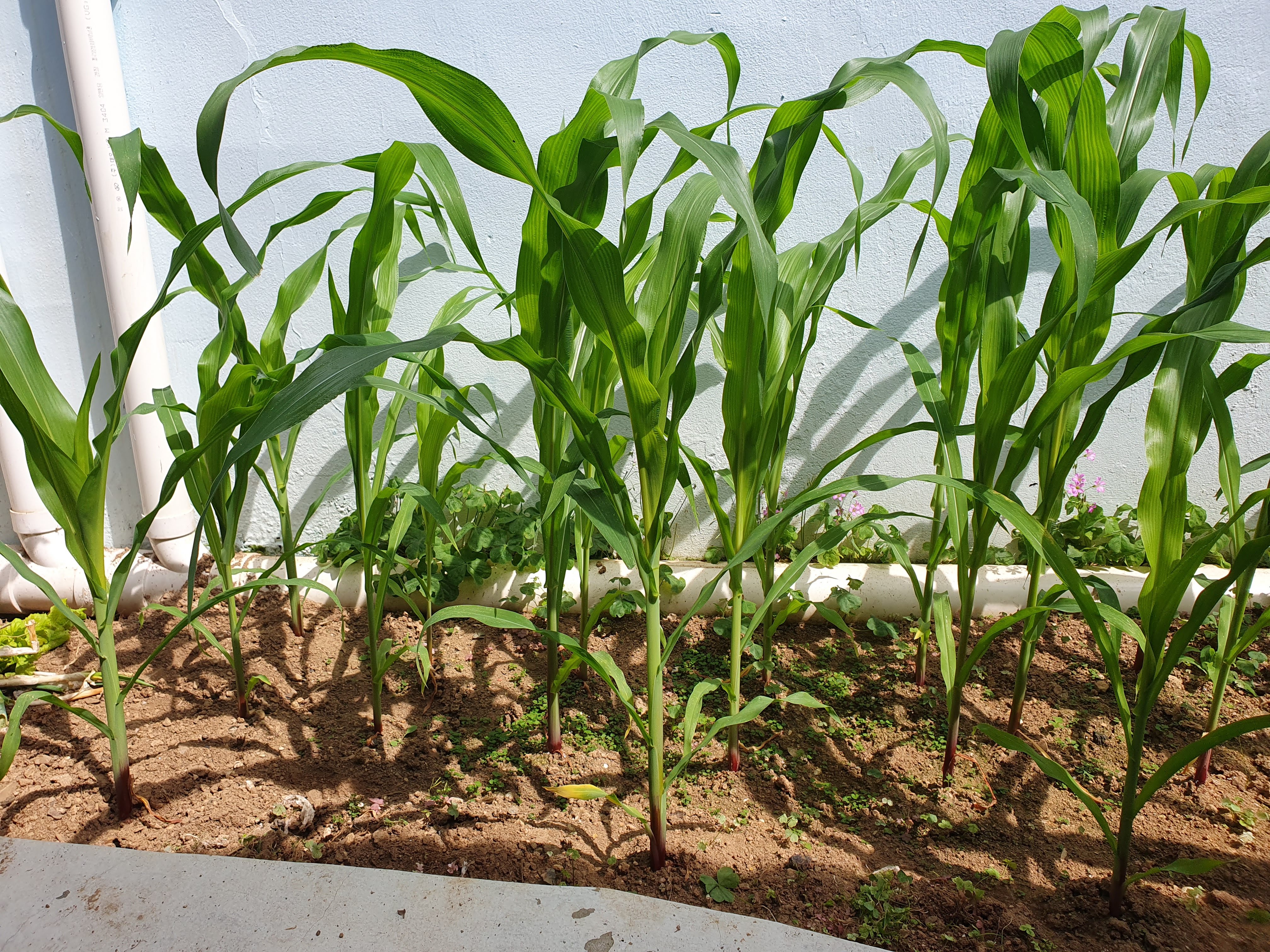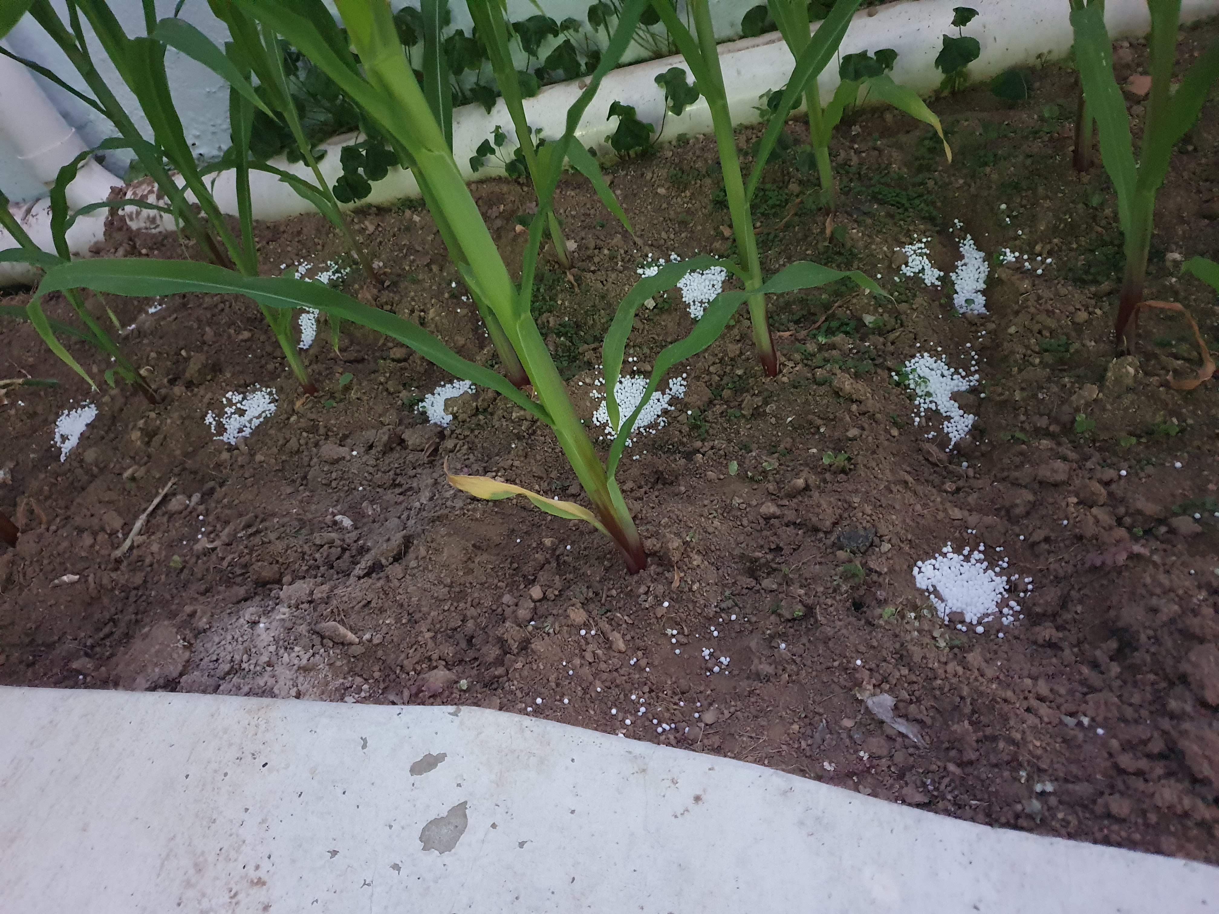 6.16. 에는 장마 전에 비료를 줄 준비를 하였습니다. 옥수수잎이 7~8장이 났을 때, 요소 비료를 주면 좋다고 하네요. 저희집 옥수수들도 잎이 7장 정도 났으니까 비료를 줄 준비를 해야겠습니다. 비료를 준 다음에는 물을 많이 줘야 한다고 합니다. 그래서 장마 전에 비료를 주면 좋다고 하는군요. 비료는 옥수수 뿌리에 직접 주지 말고 좀 떨어져서 밥 한 숟가락 정도 주고, 물을 줘서 요소 비료가 땅에 흡수되게 하는 게 중요하다고 합니다.