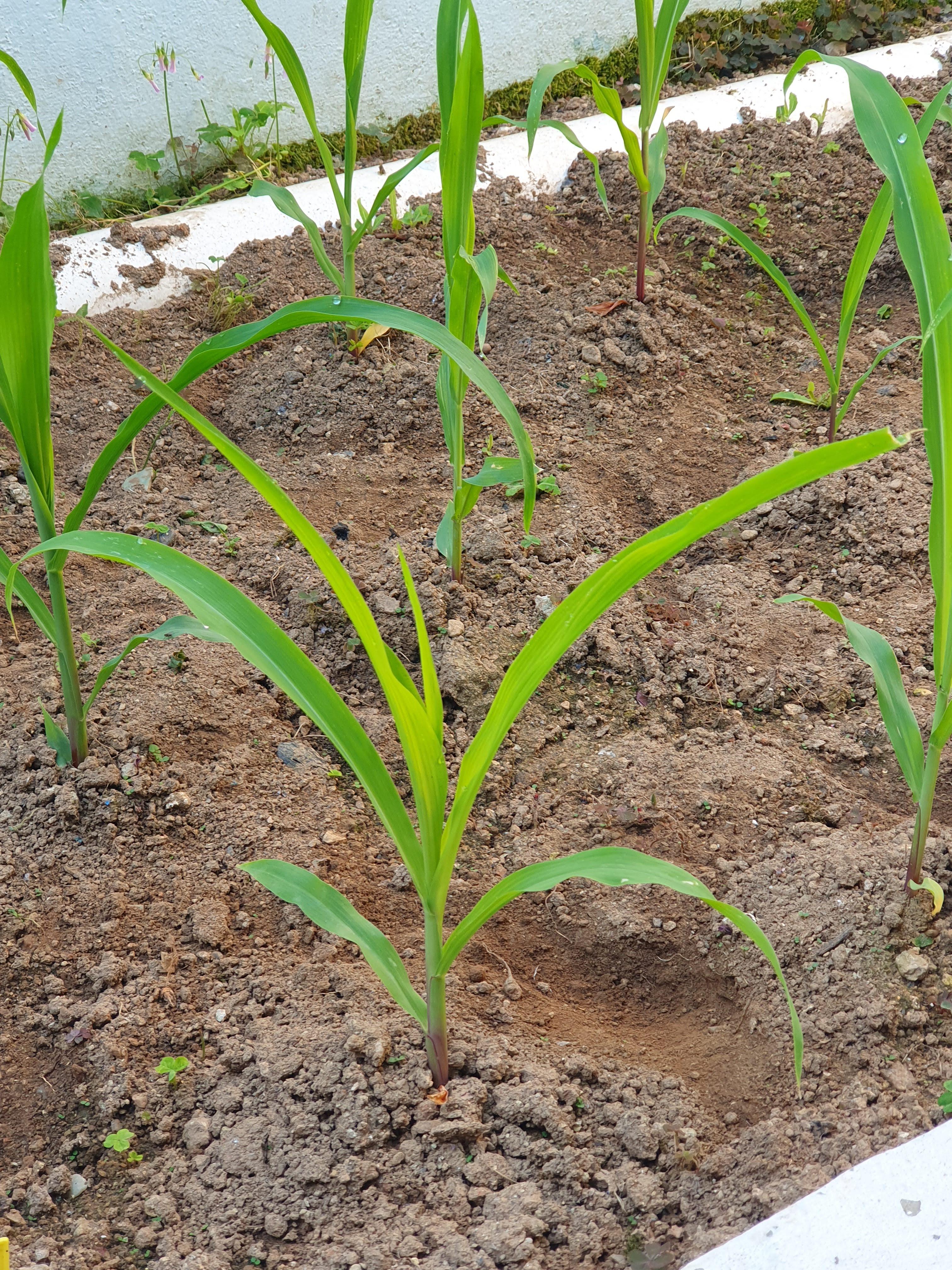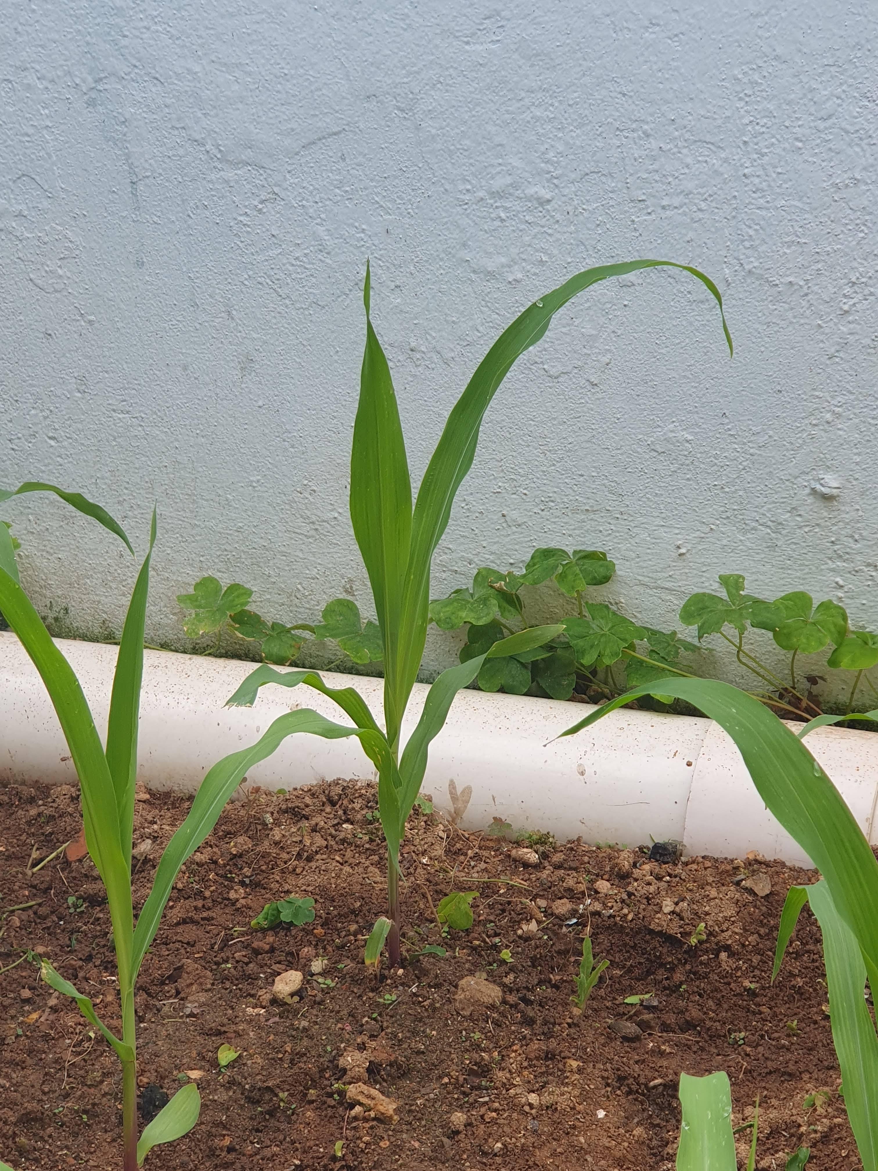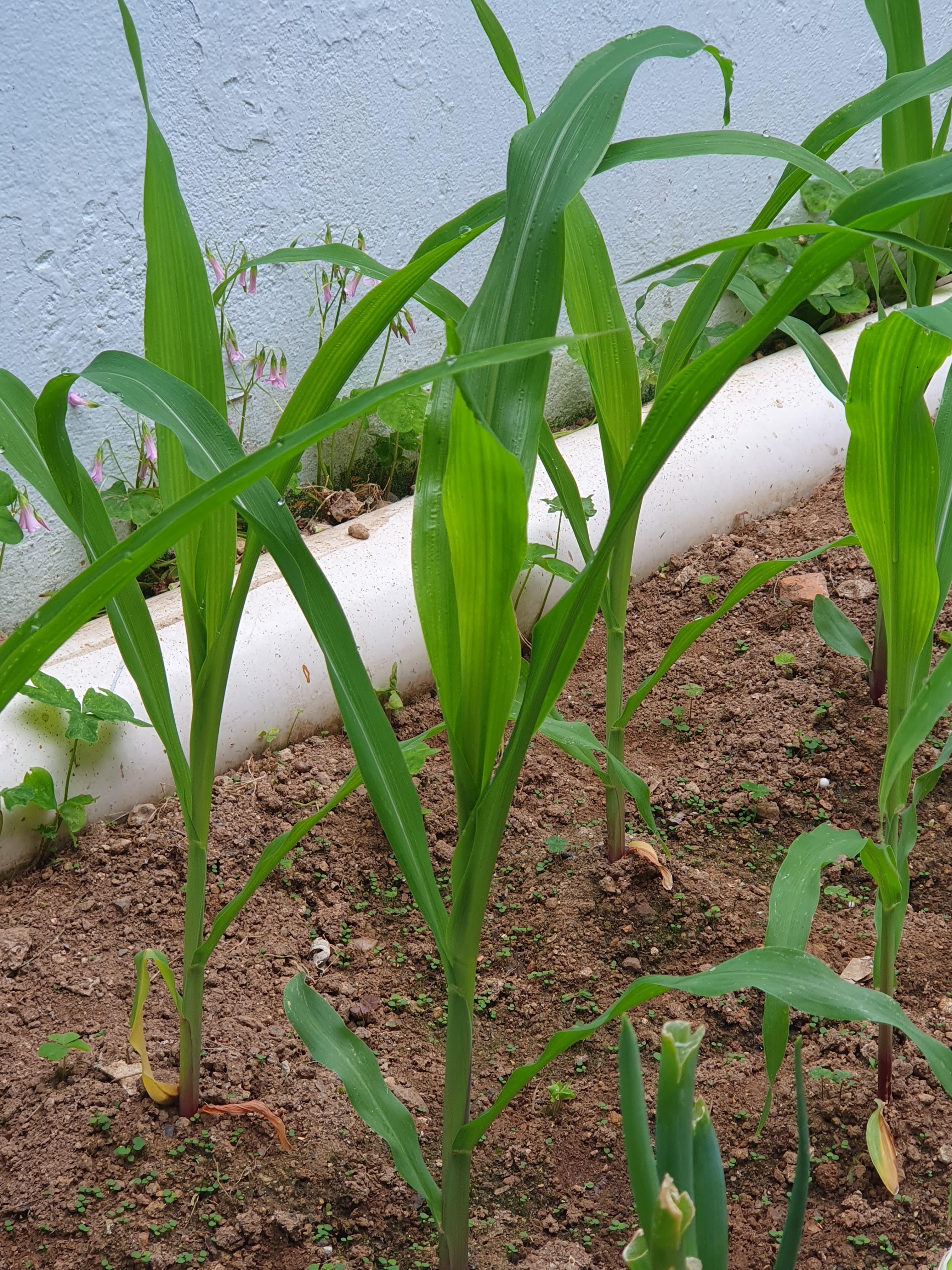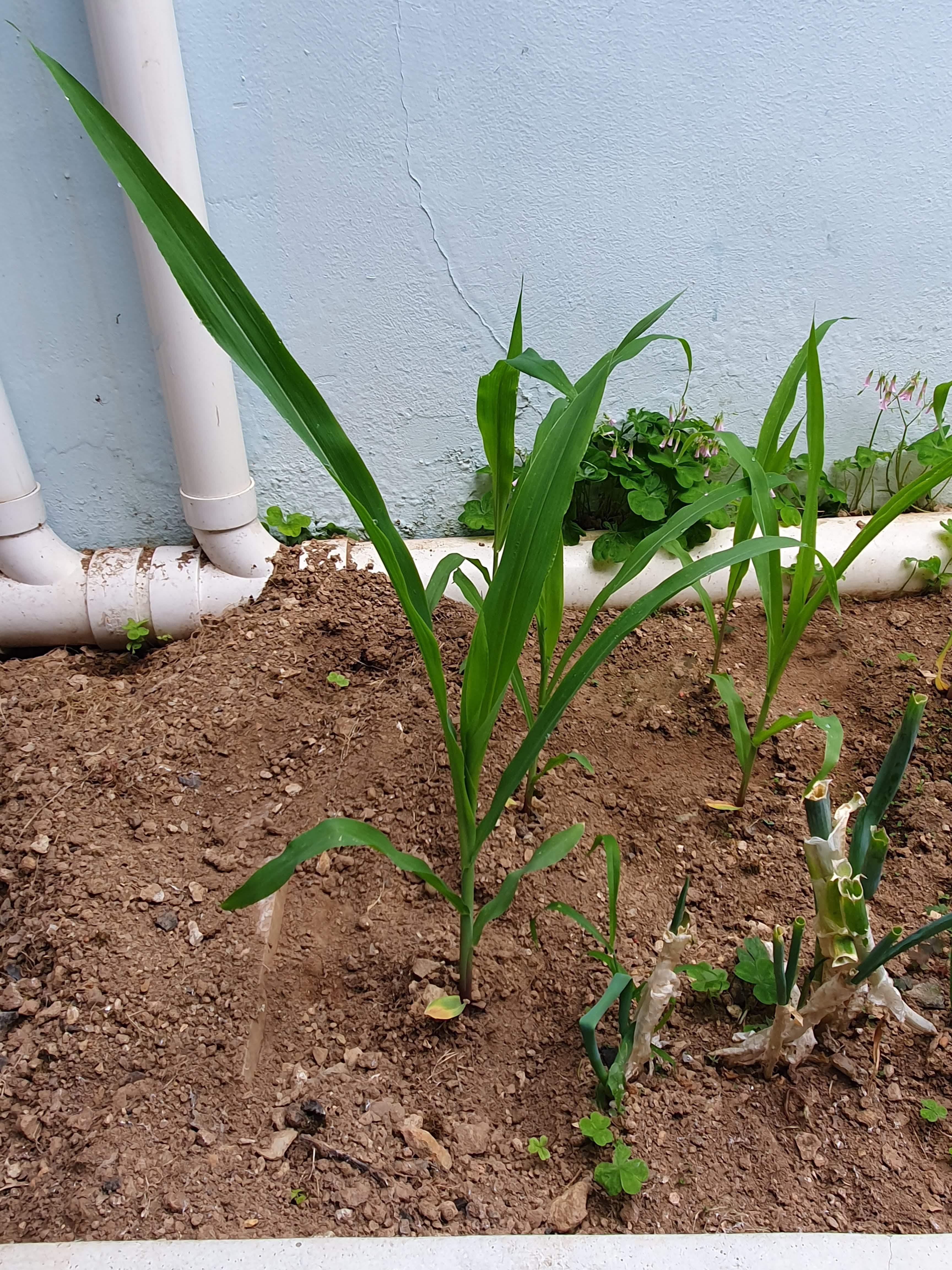 6.1.토요일에는 옥수수잎이 5개째 난 날입니다. 오후 5시에는 잡초를 제거한 후 물을 주었습니다.