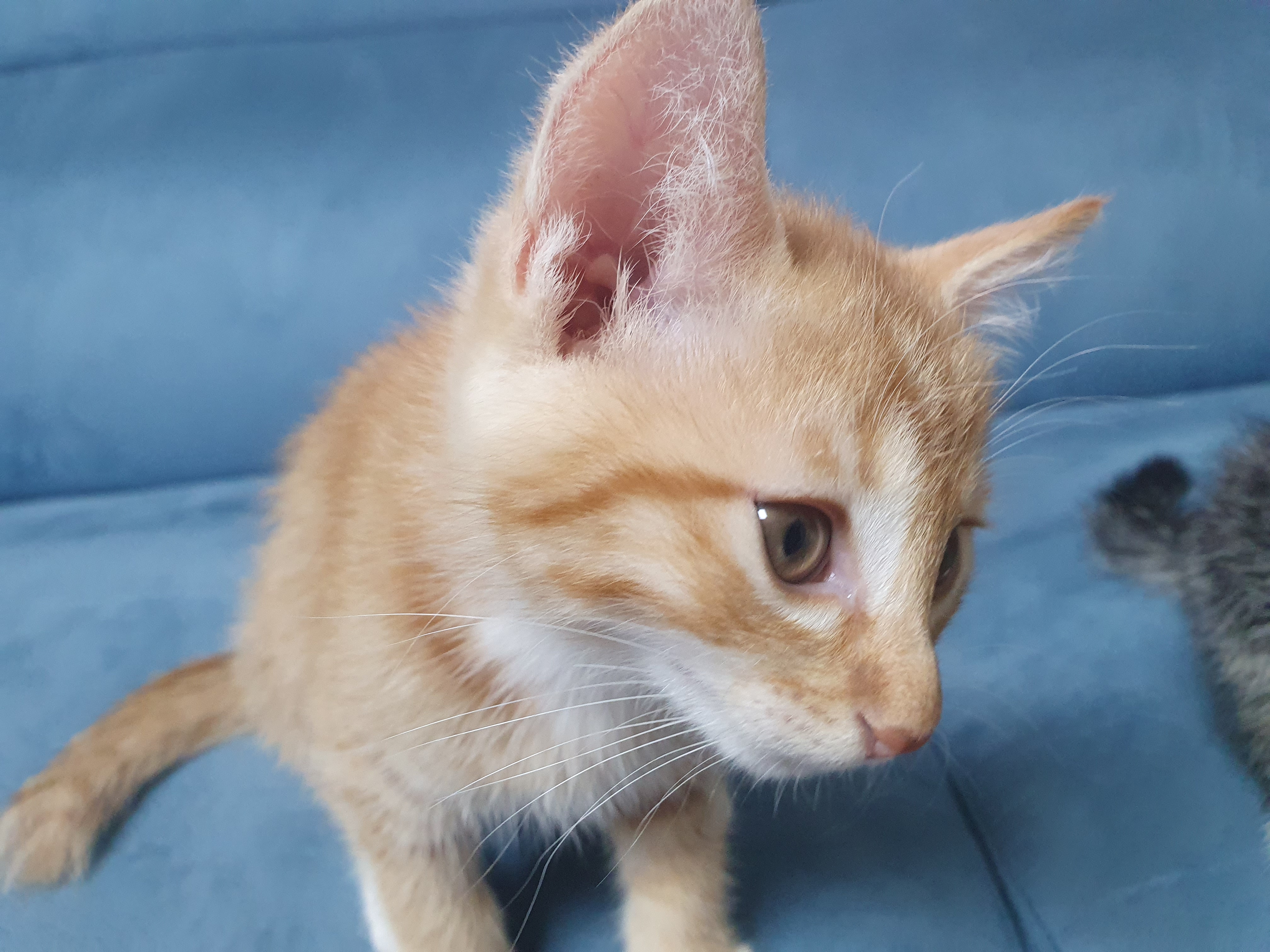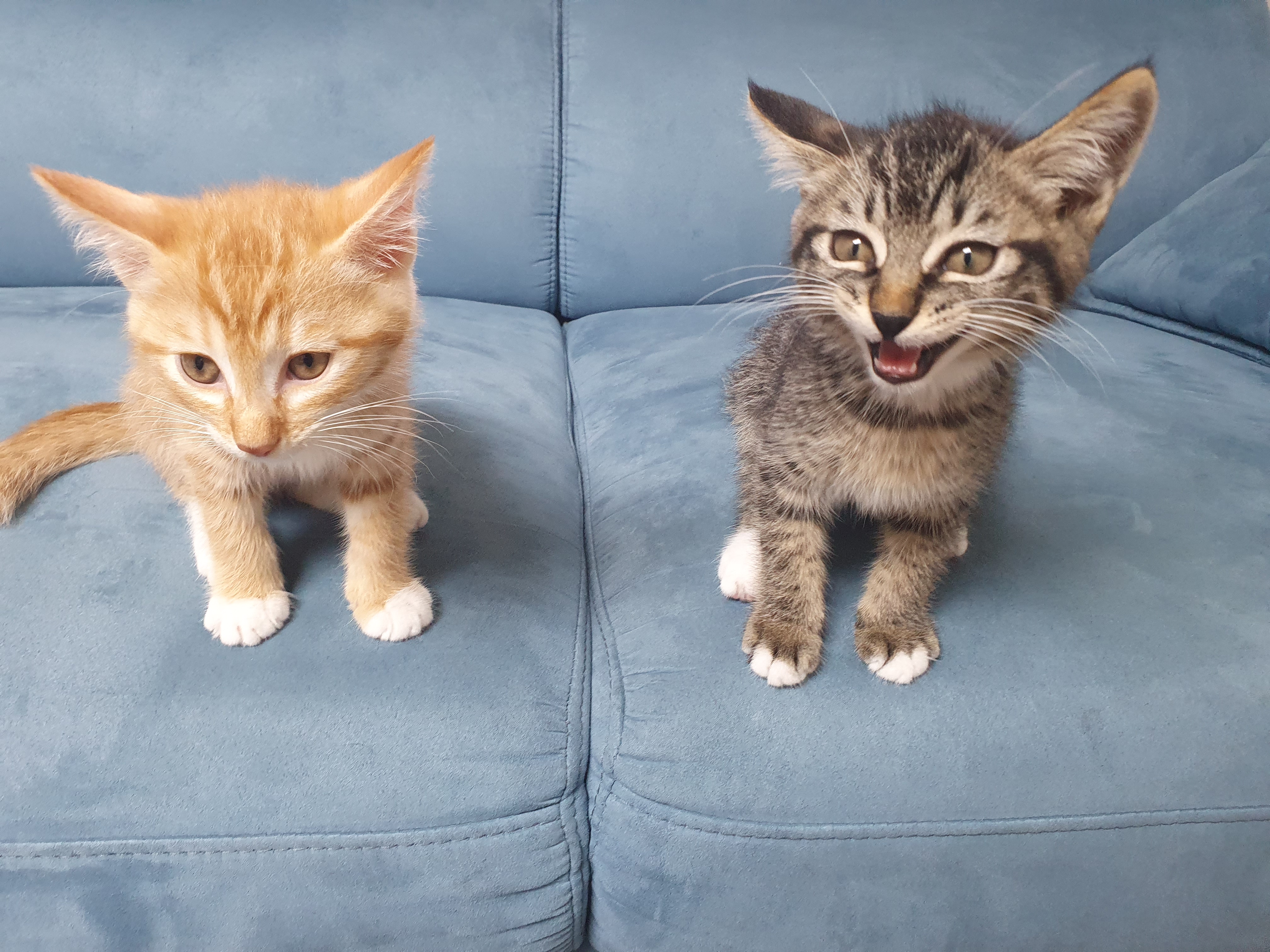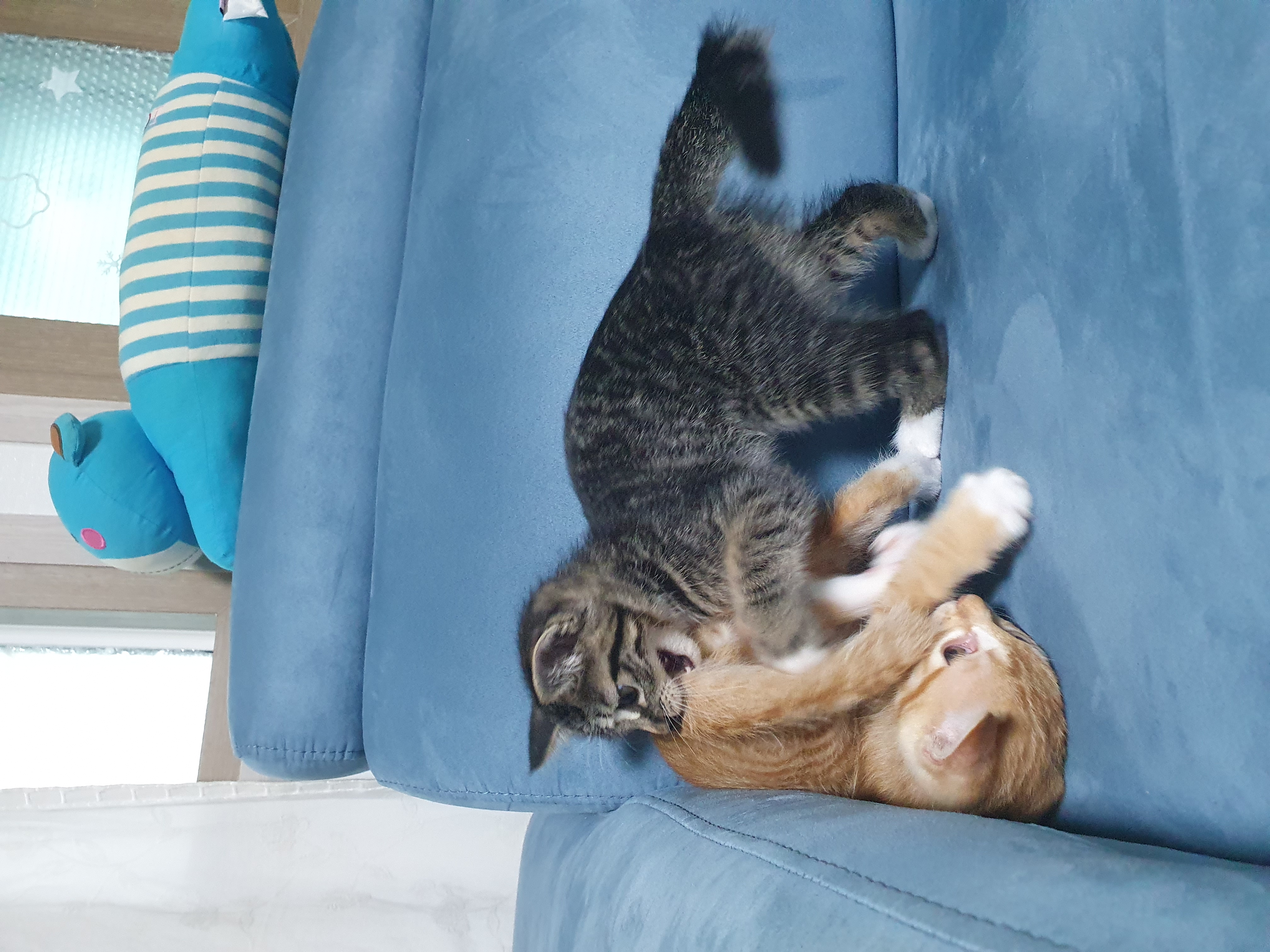아침밥 먹고, 장난치는 새옹(치즈테비)이와 송이(고등어테비)