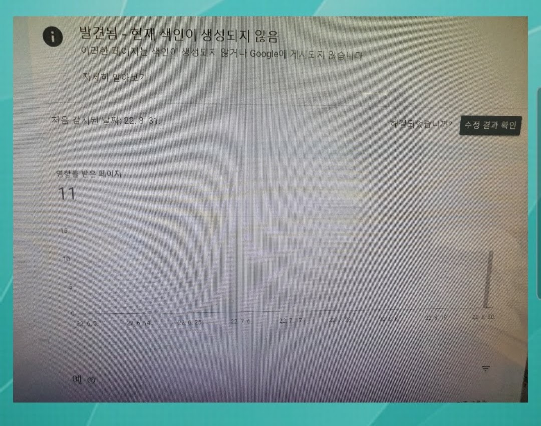 현재 색인이 생성되지 않음을 누르면 영향을 받은 페이지를 보여 줍니다. 페이지별로 하나씩 들어가 줍니다. 숫자가 같다고 해서 한 번만 하시면 안됩니다. 왜냐면 PC와 모바일이 각각 페이지를 보여줄 수도 있기 때문입니다. 해당 페이지를 누르면 우측에 URL 검사를 또 눌러 줍니다. 그러면 URL이 구글에 등록되어 있지 않다는 화면이 보일 것입니다. 실제 URL테스트를 한 번 더 해 봅니다. 그 다음에 색인생성요청을 마지막으로 눌러 줍니다. 그리고 며칠을 기다리면 됩니다. 그런데 이 '색인생성요청'을 할 수 있는 갯수가 제한이 있습니다. 중간에 그림 맞추는 화면이 나오는 경우도 있습니다. '계단 있는 그림을 체크하라' 또는 '택시가 있는 그림을 체크하라'는 등등 나옵니다. 그럼 그 그림들을 체크하면 됩니다. 이 체크를 해도 당일의 '색인생성요청' 갯수를 초과하면 다음날 색인생성요청을 안한 페이지를 이어서 해주시면 됩니다.