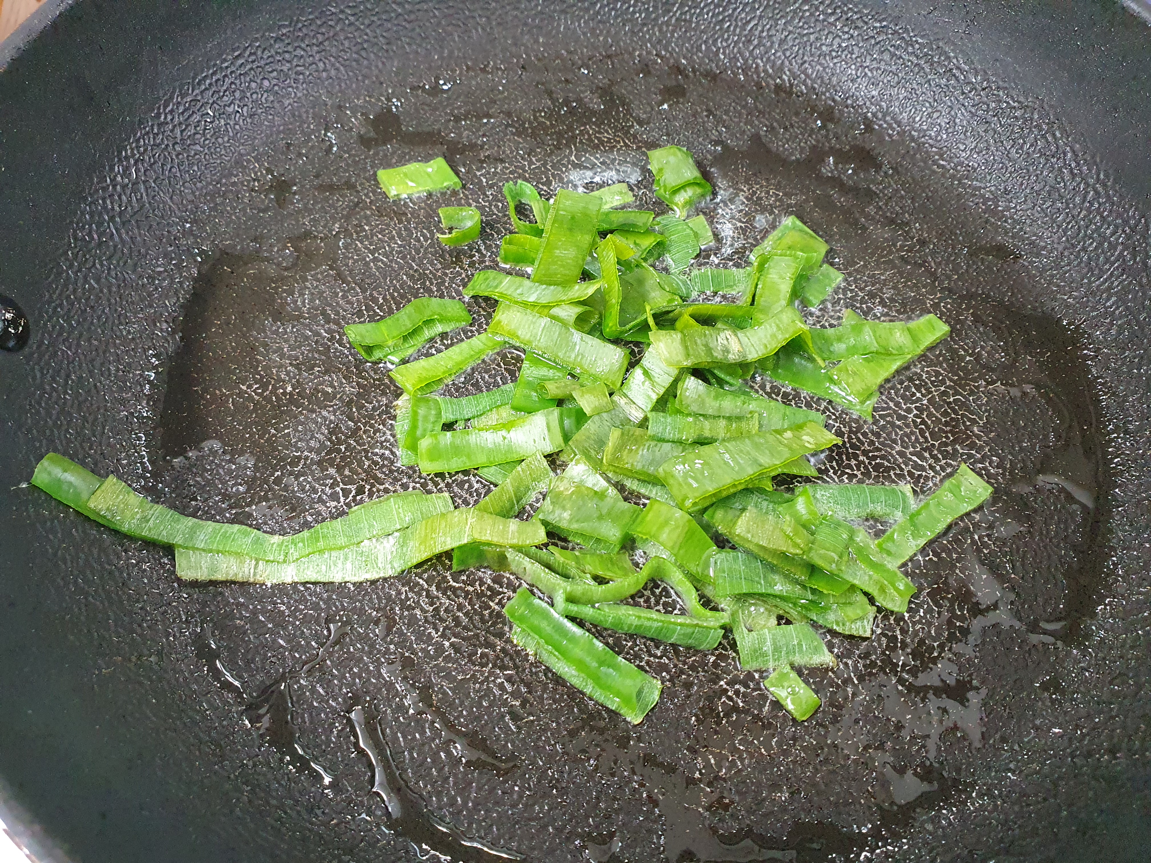 먼저 프라이팬에 파기름을 냅니다.