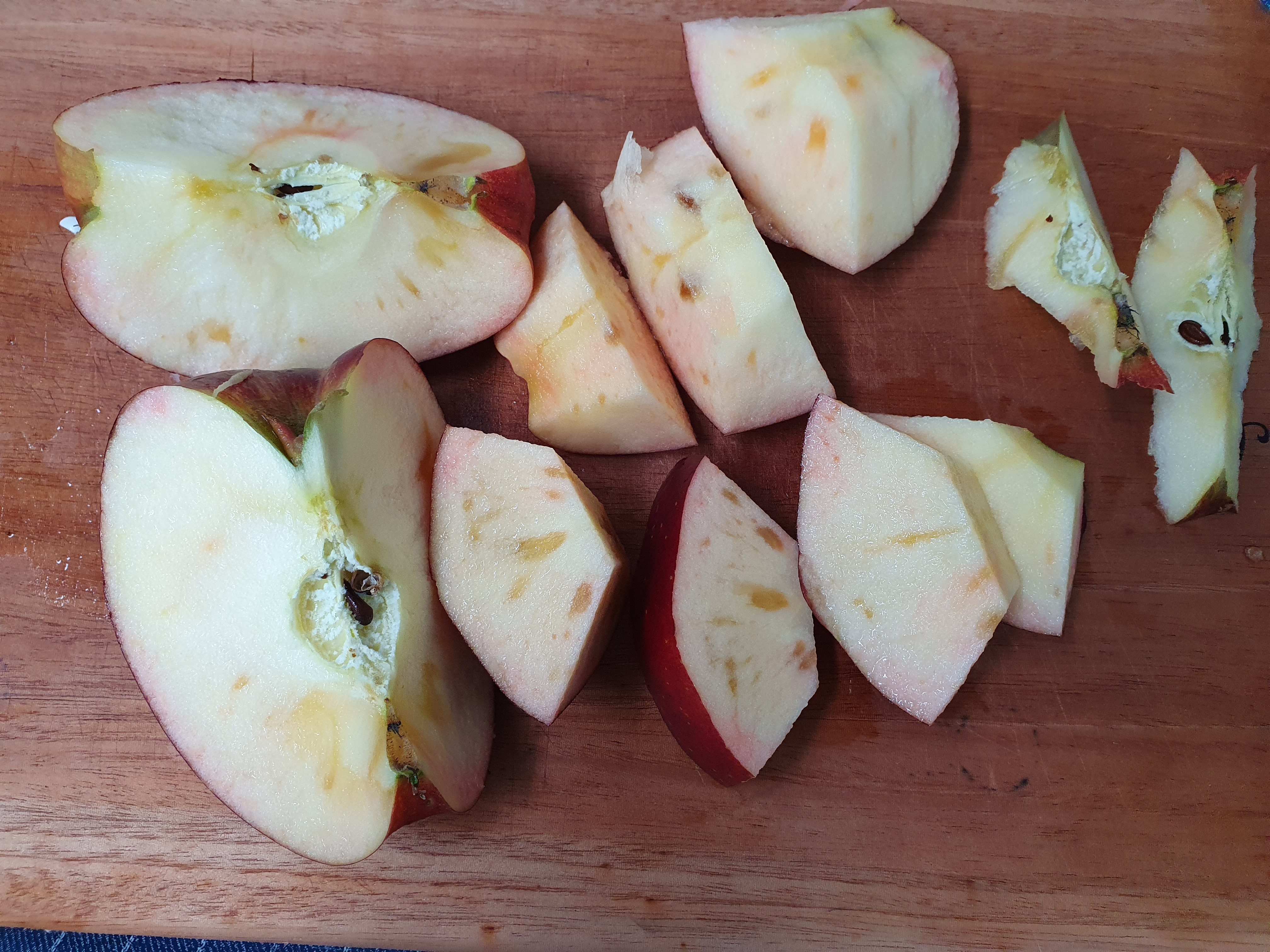 잘라보니 피치애플 속에 꿀이 박혀 있네요. 먹어보니 새콤달콤하니 맛있습니다.