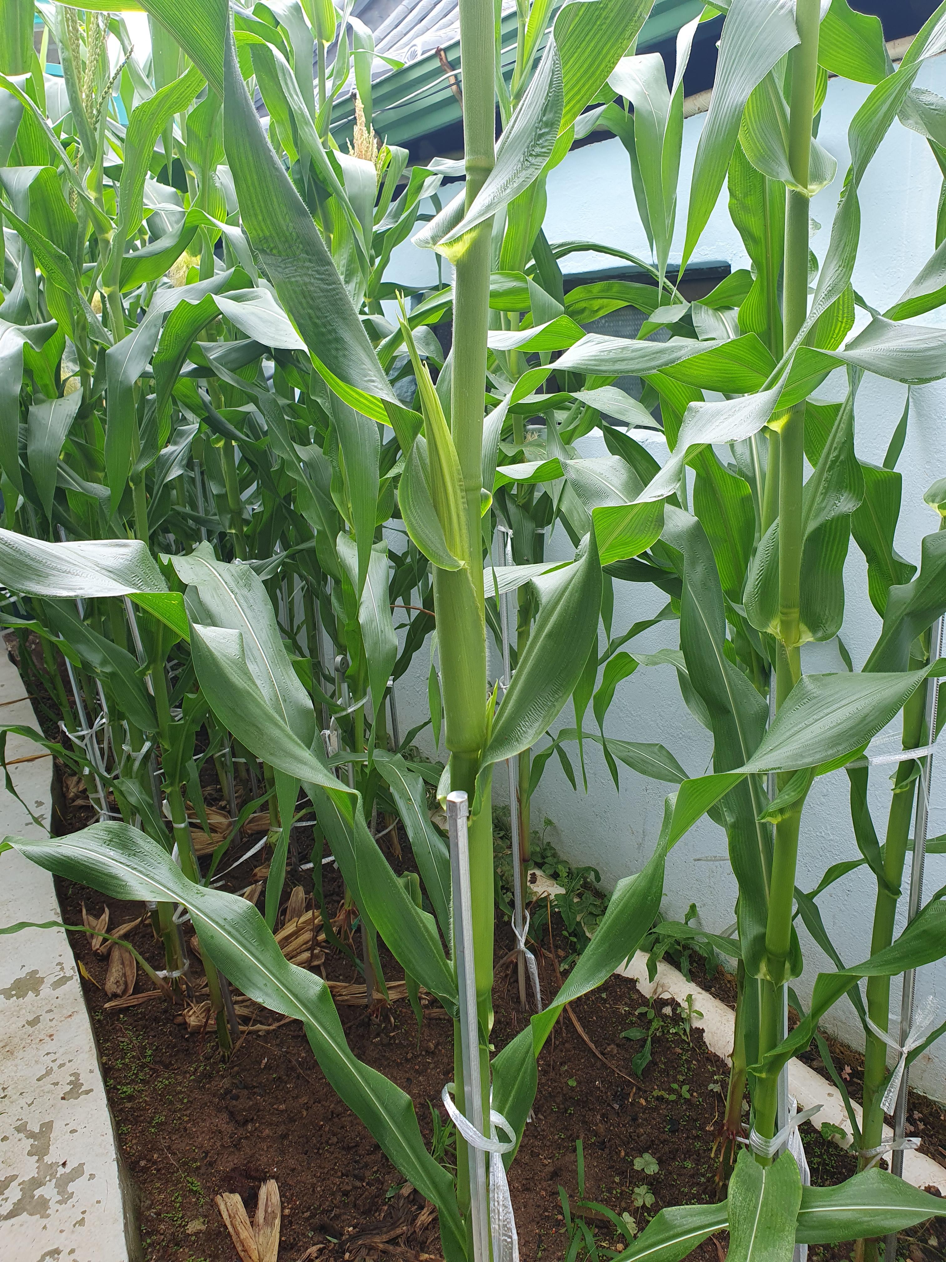 오늘도 옥수수들을 관찰하다가 처음으로 한 개의 옥수수에서 두 개의 생옥수수가 맺히고 있는 걸 발견했습니다.