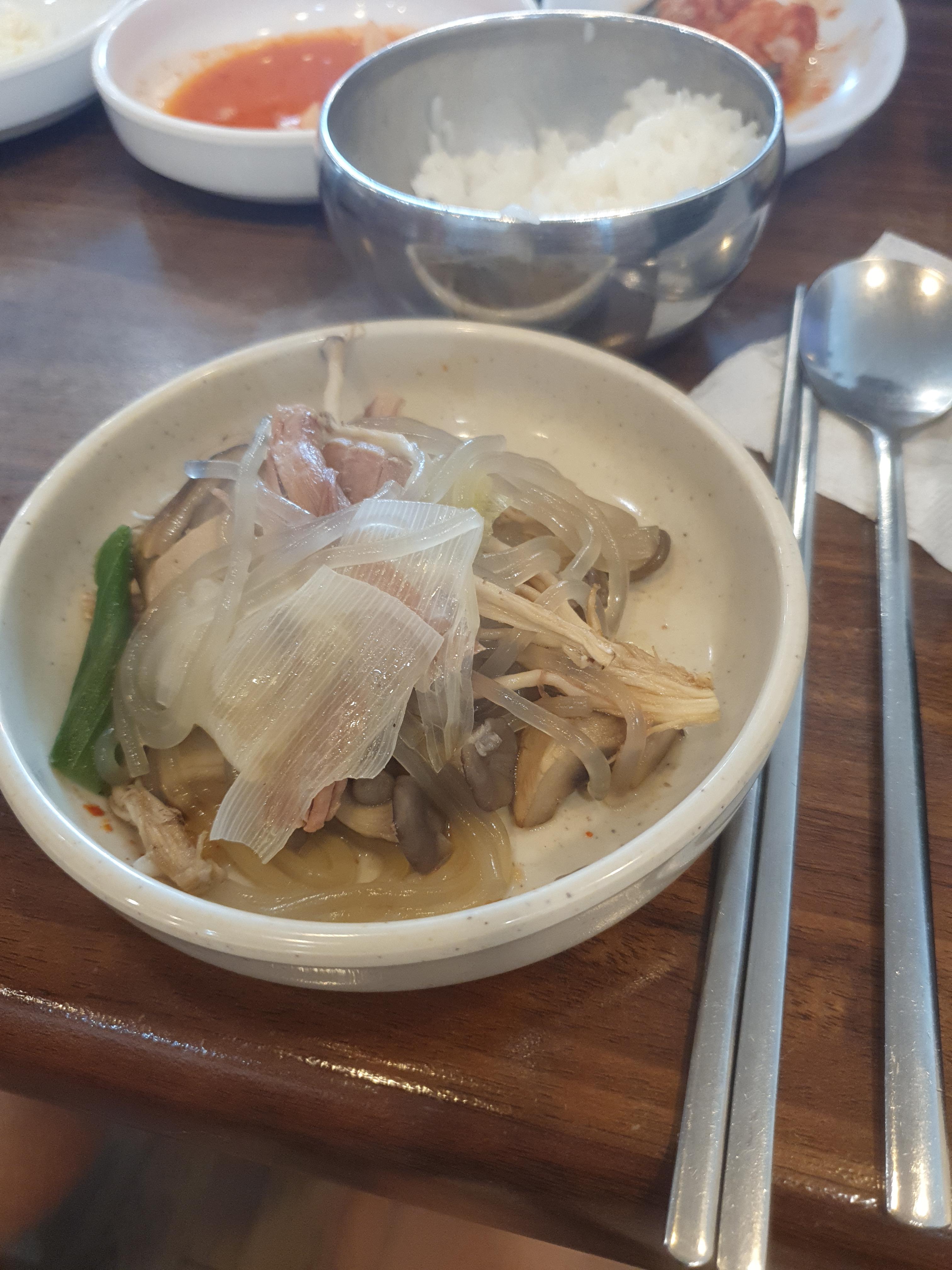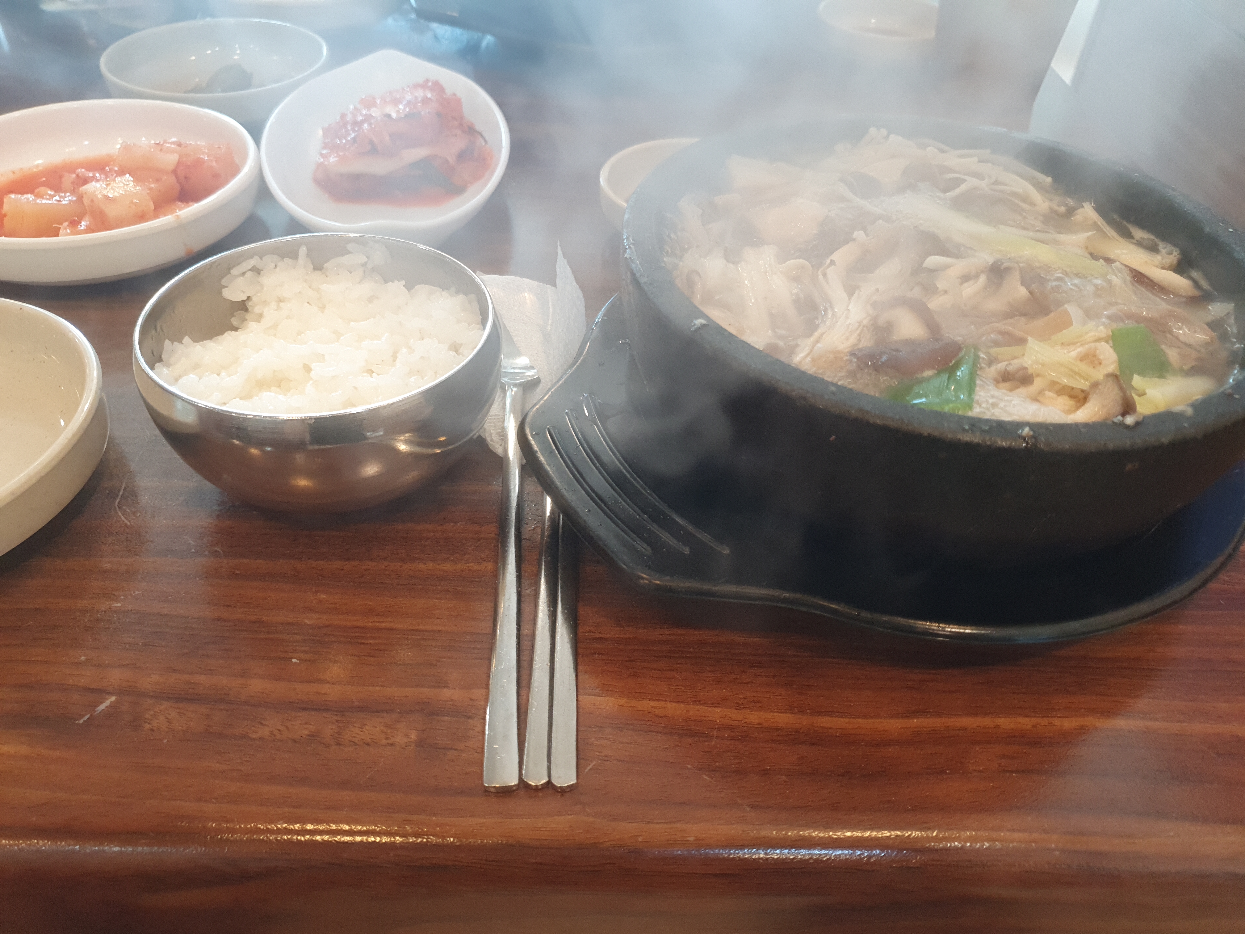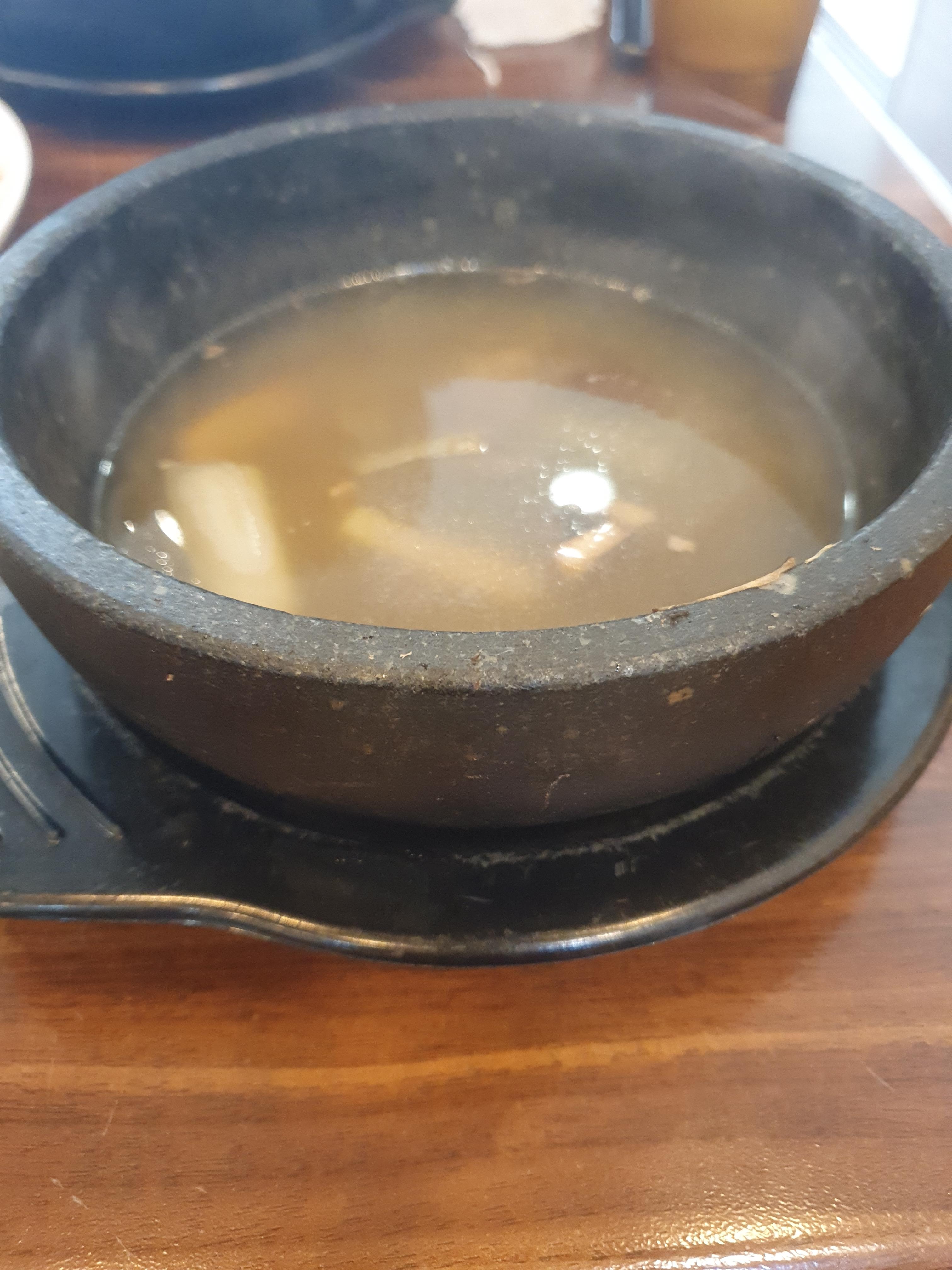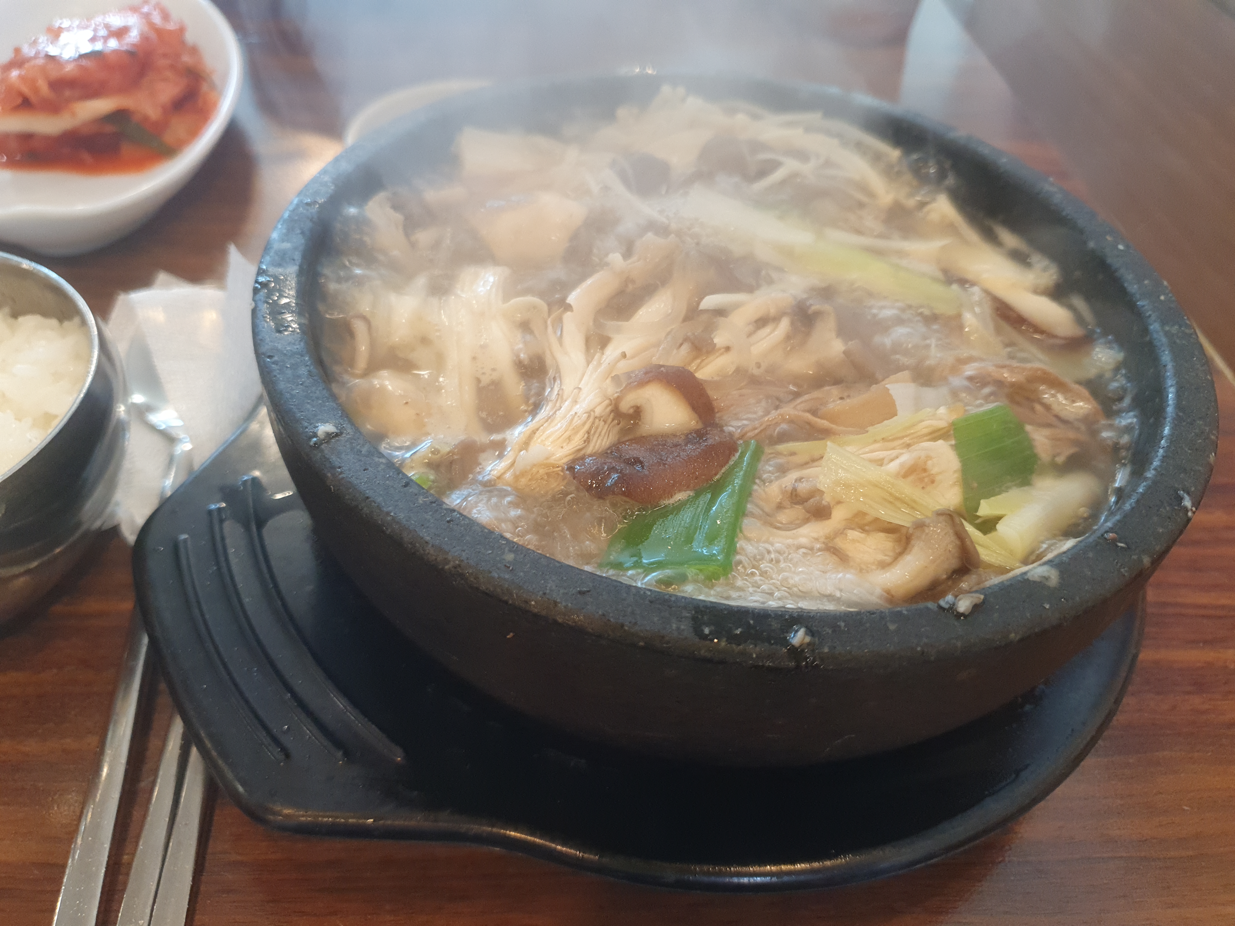 맑은 버섯탕을 시켰는데 다양한 버섯과 소고기가 진한 육수에 뜨끈하게 나왔습니다.
