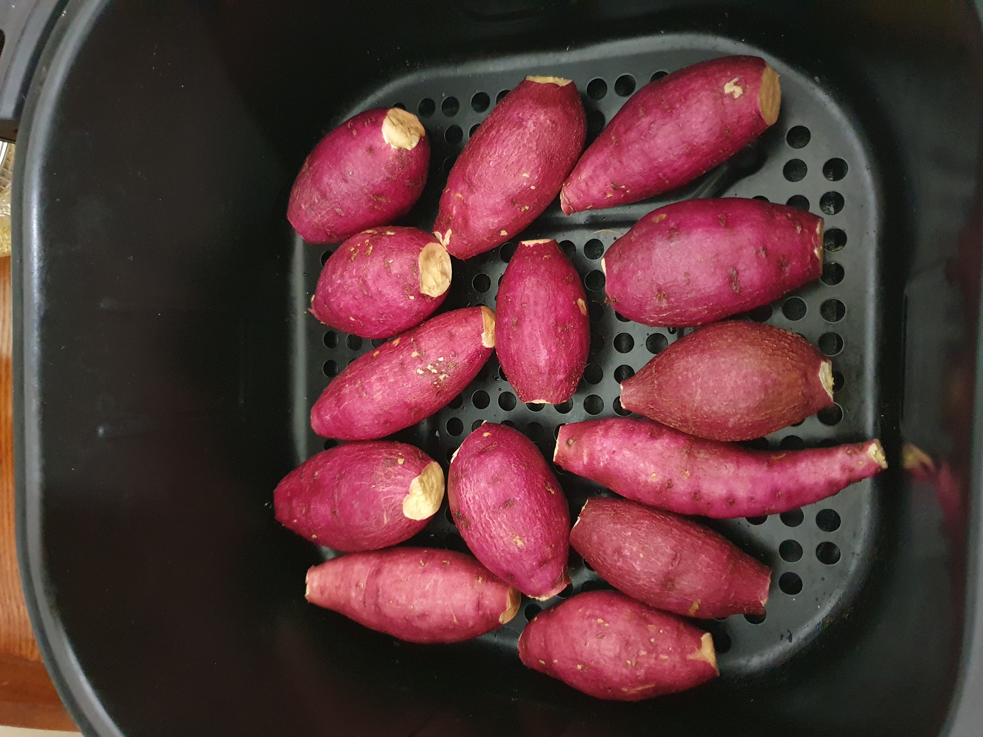 에어프라이어에 고구마를 나란히 눕힌 다음에