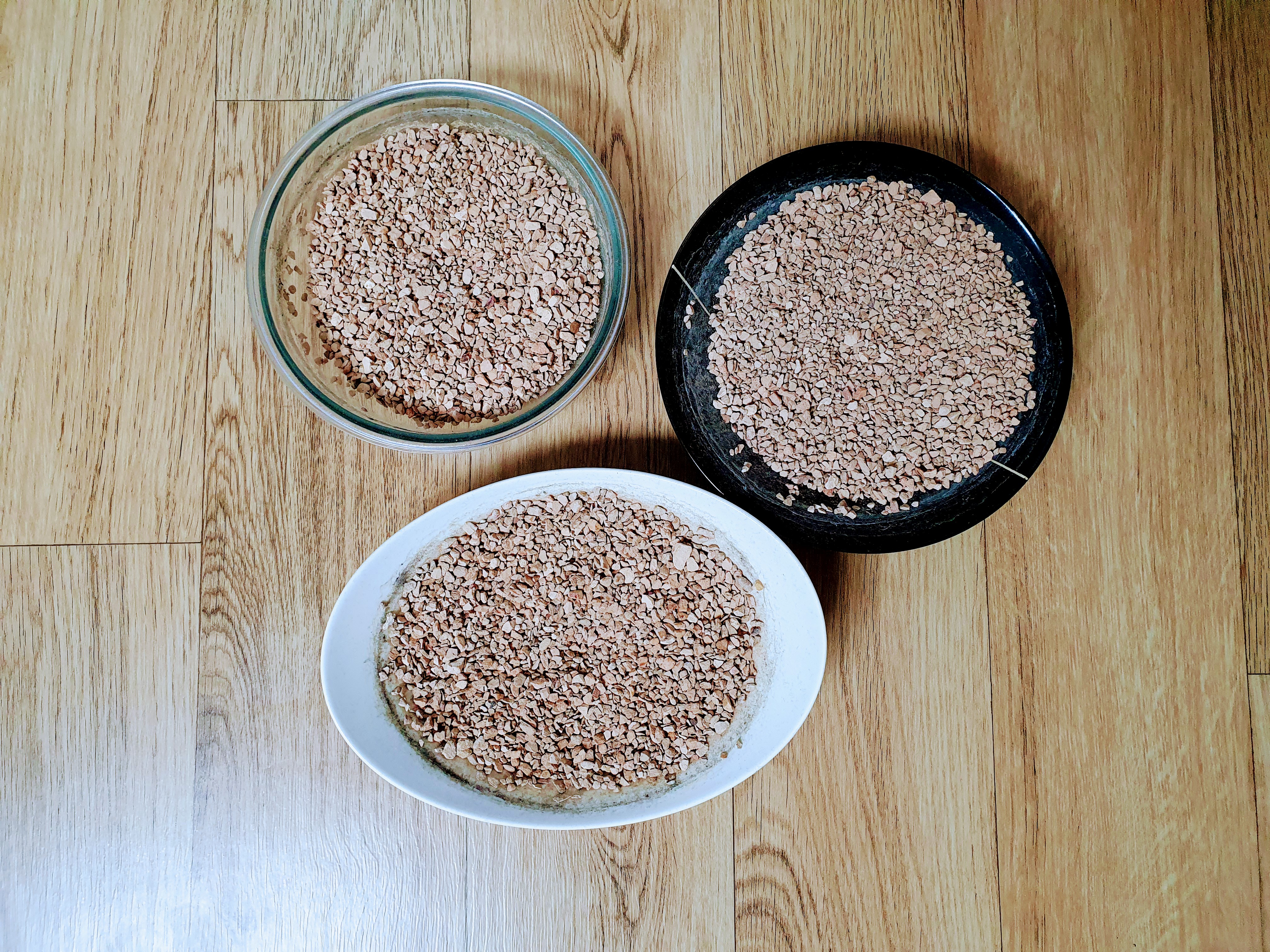 황토로 가습과 제습을 하기 위해서 3개로 나누어 담았습니다.