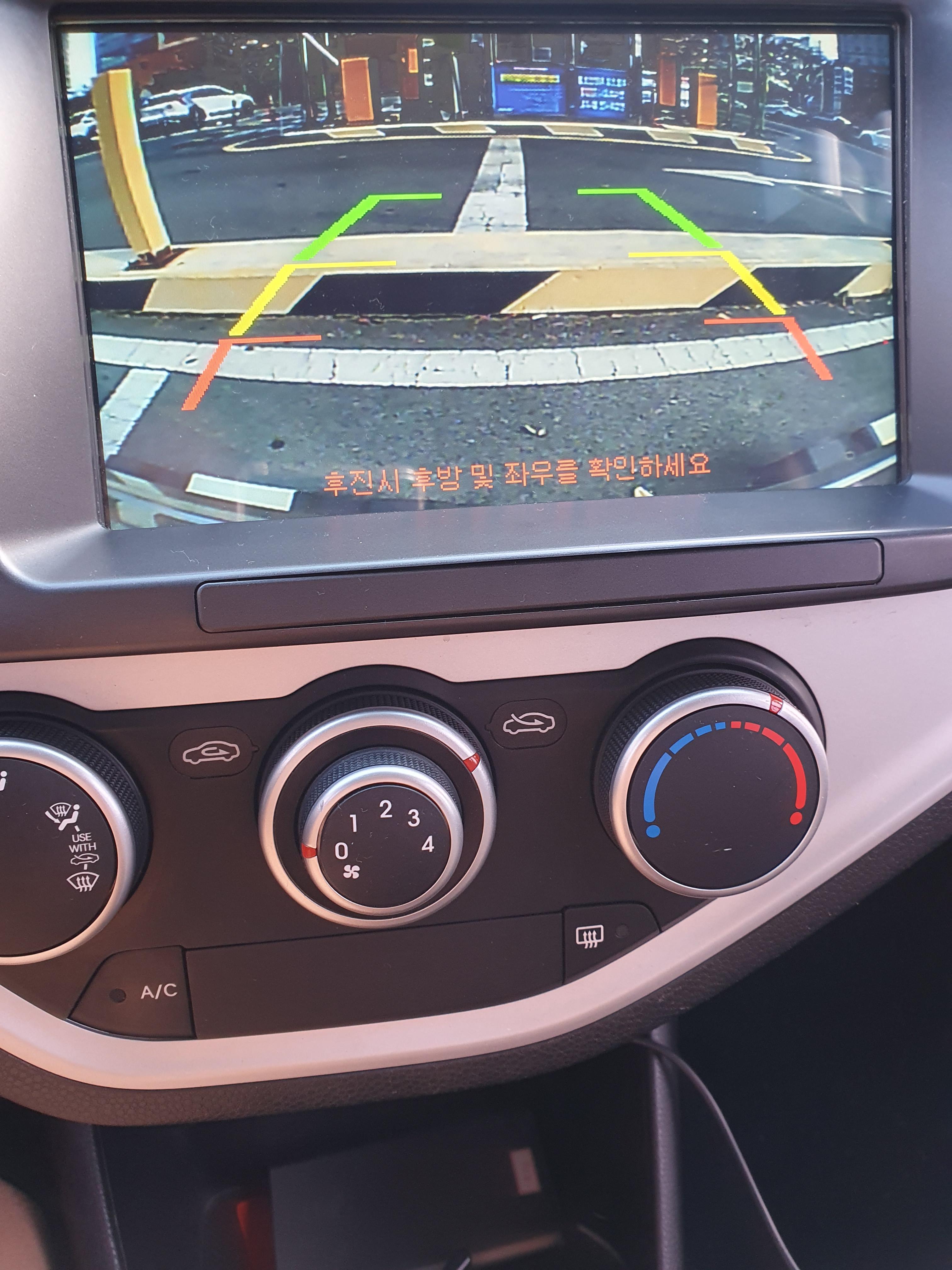 후진주차할 때 후방카메라의 빨간선을 맞추어도 앞부분이 톡 튀어나오네요. 차가 크지도 않은데