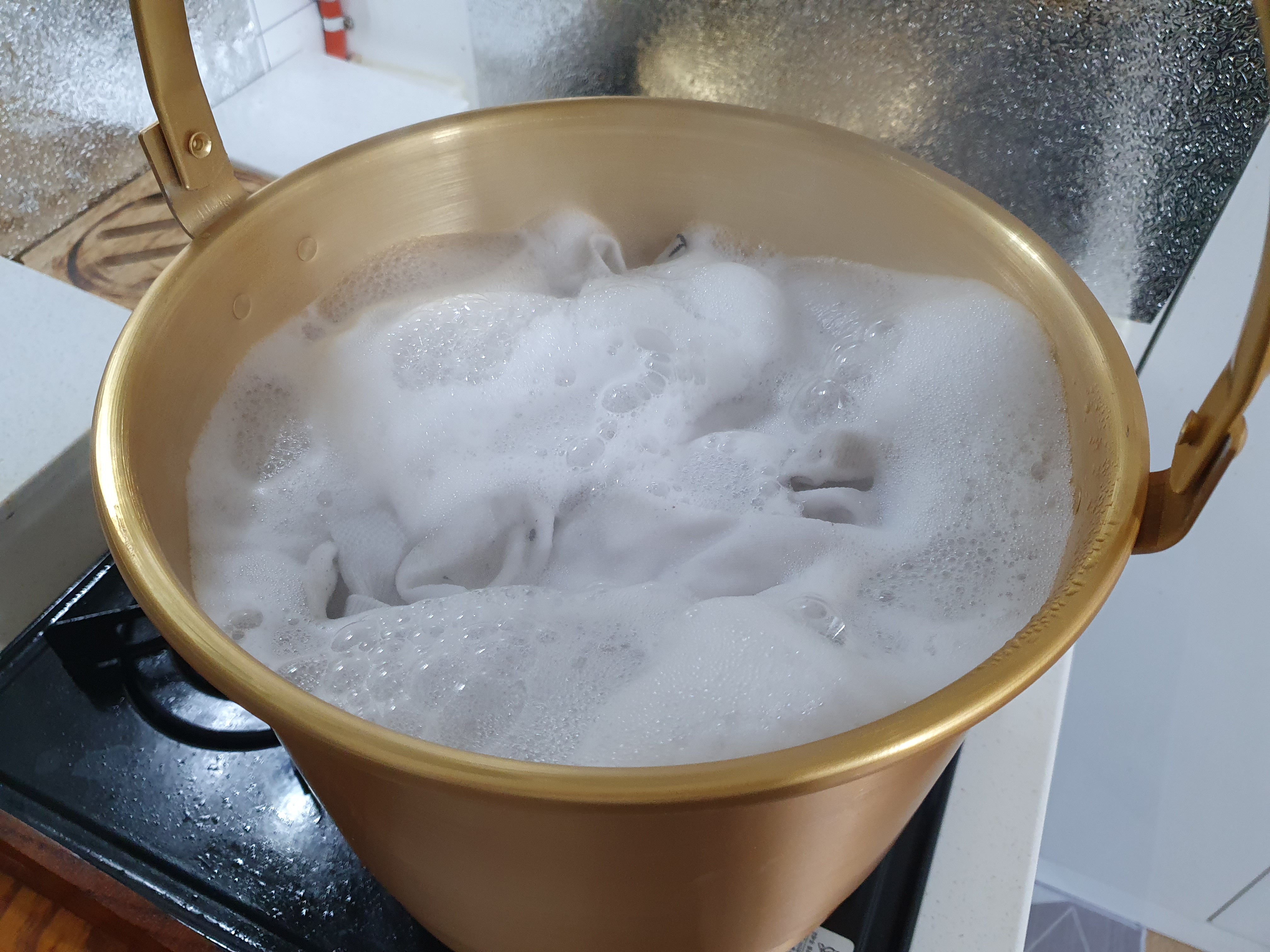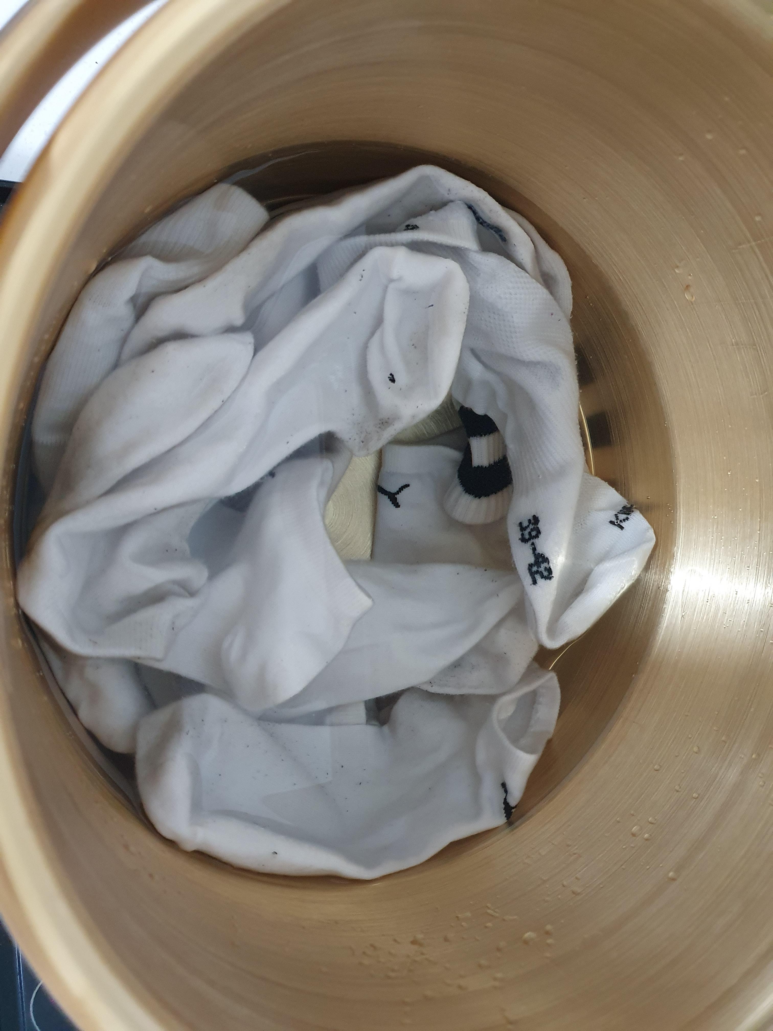 남편이 흰 양말을 삶아 달라고 해서 한 번 삶아 보았습니다.