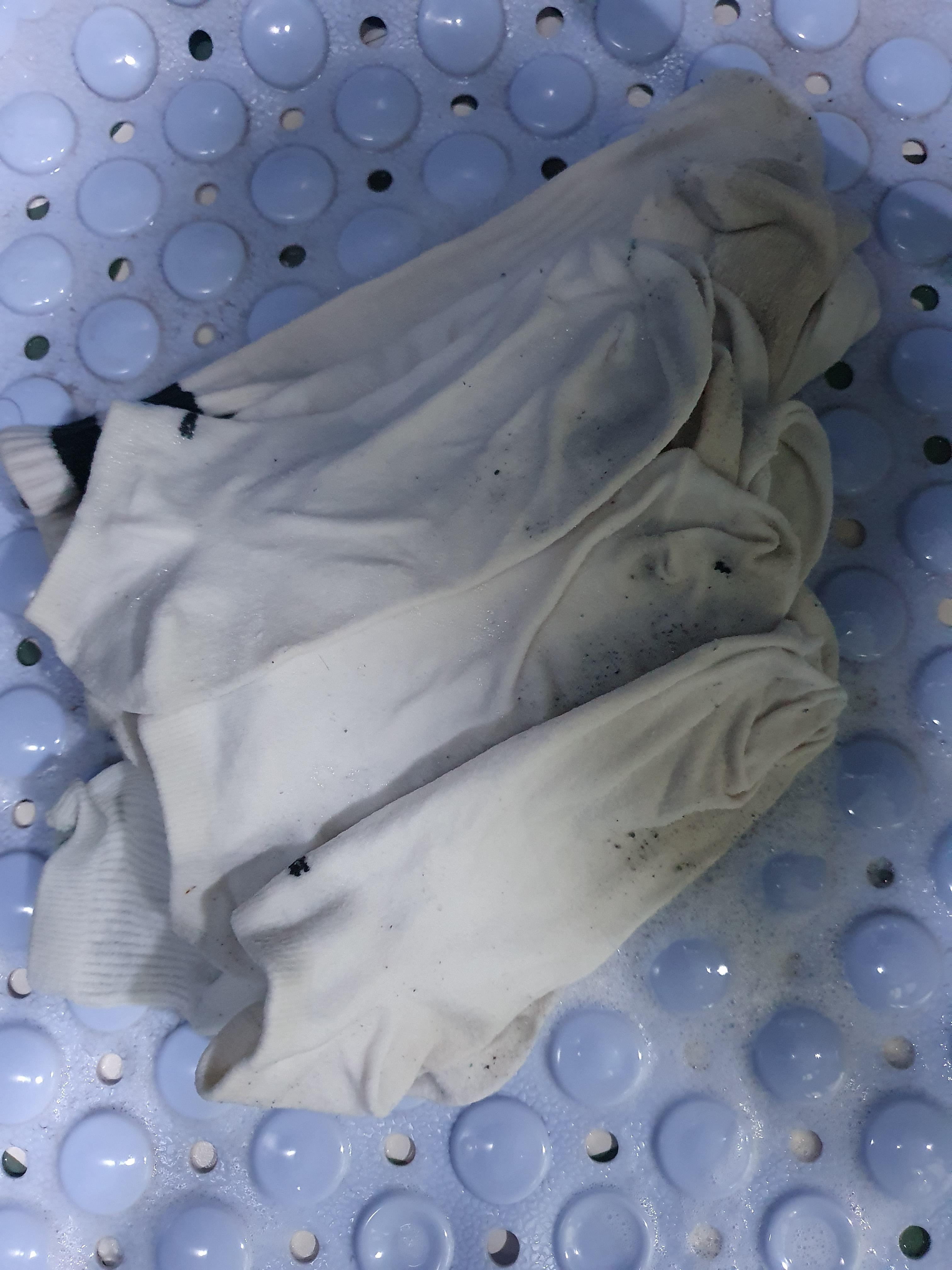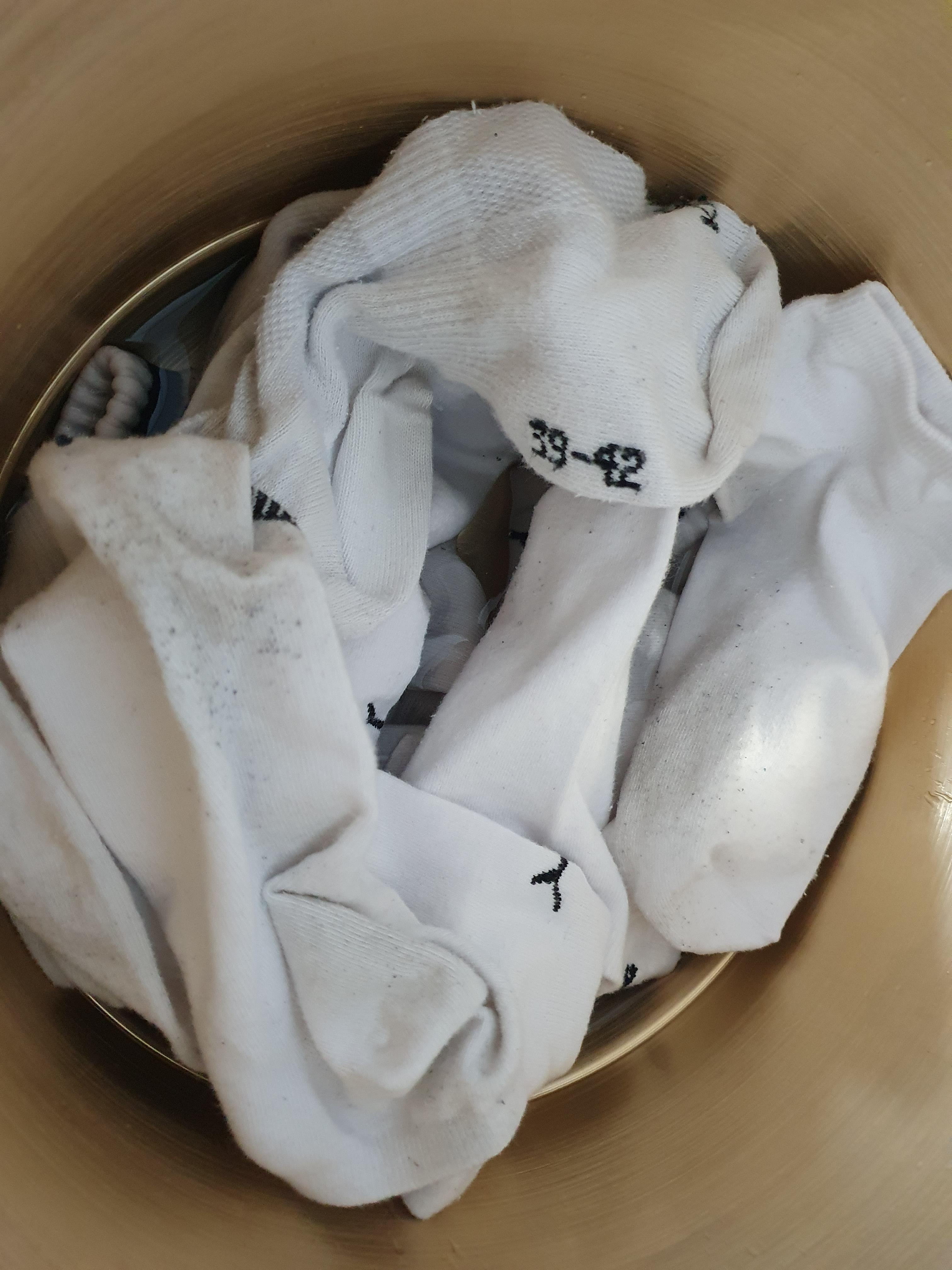 양말이 이 정도까지는 하얘지네요. 양말이 순면 100%가 아니었나 봅니다. 순면이어야 삶으면 하얘지는 효과를 볼 수 있다고 했었는데.