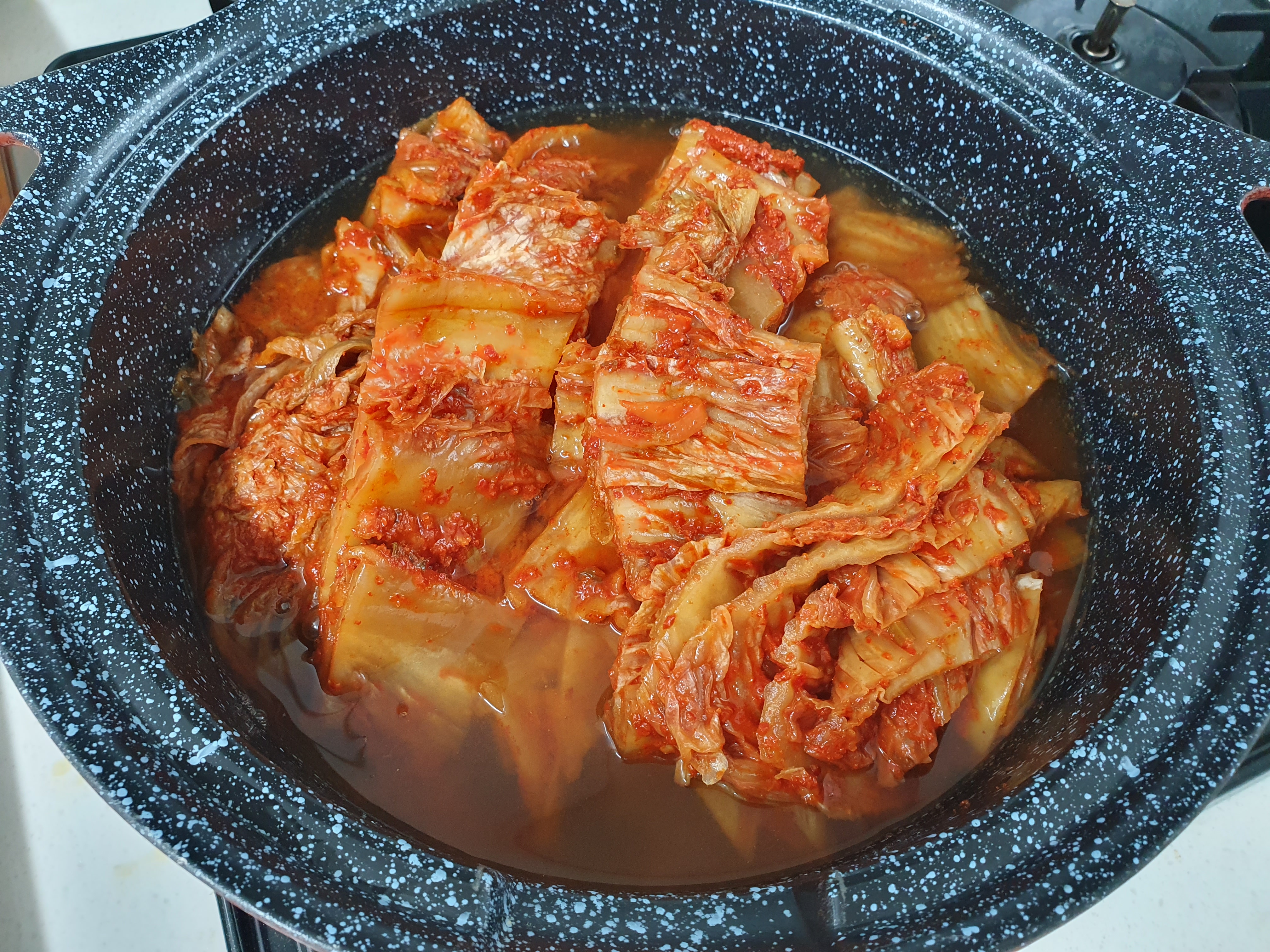 냄비에 묵은지를 넣고