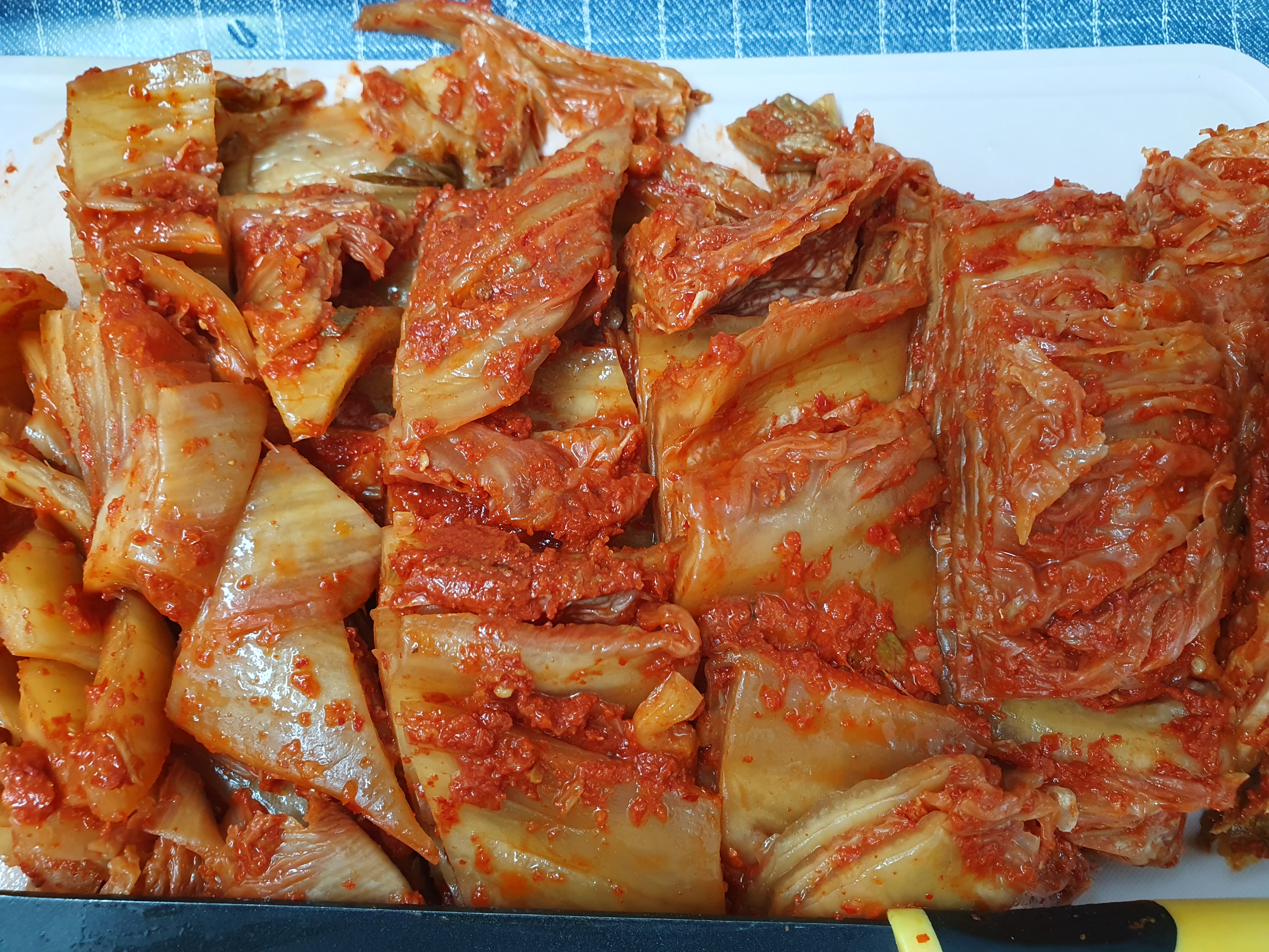 2023년산 묵은지는 큼직하게 썰어 줍니다.