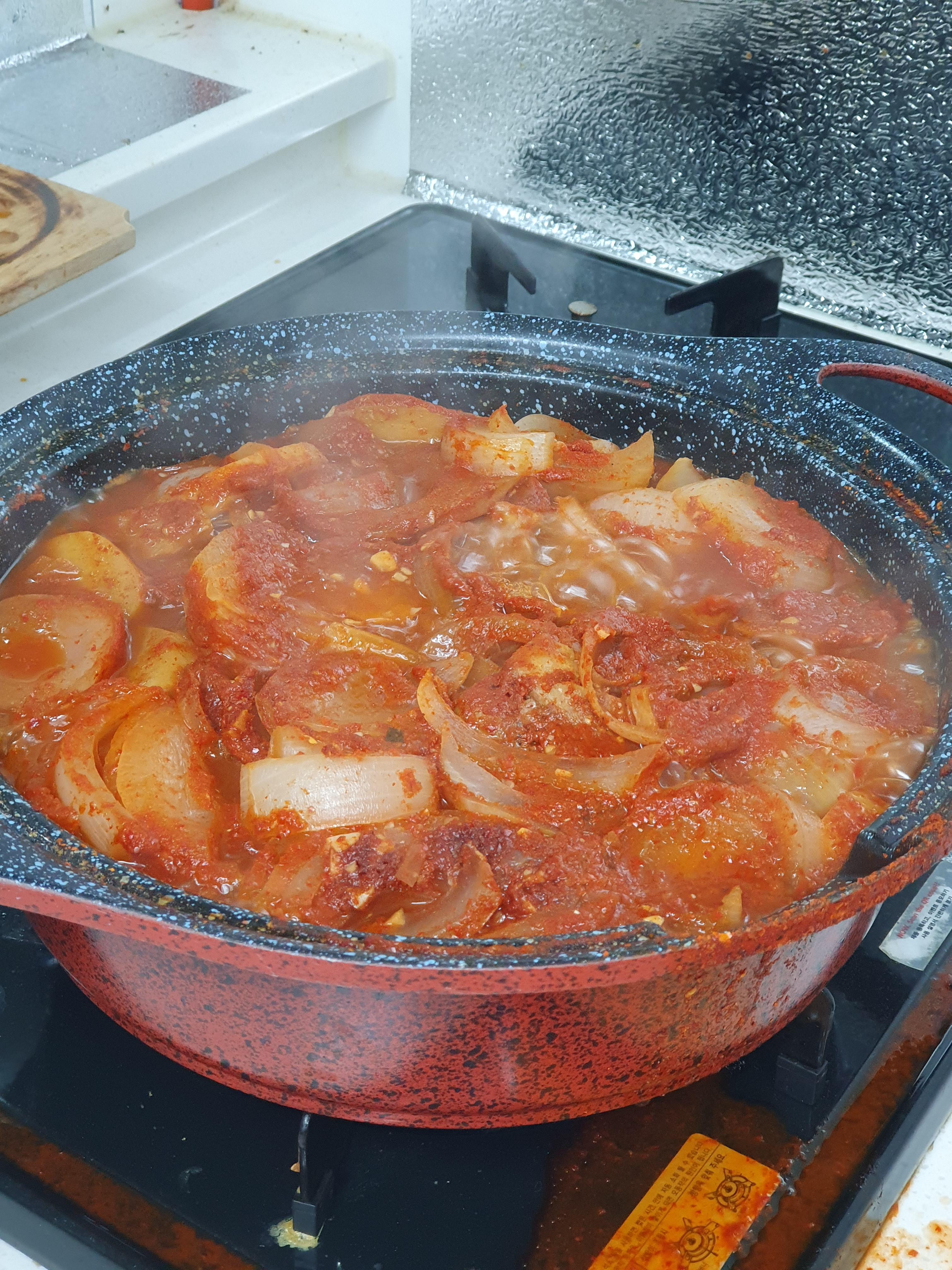 30분간 약한 불로 끓여 줍니다. 뚜껑을 제때에 열어주어야 저처럼 국물이 흐르지 않아요~오늘도 가스레인지 청소랑 주방발판 빨래를 해야겠어요.