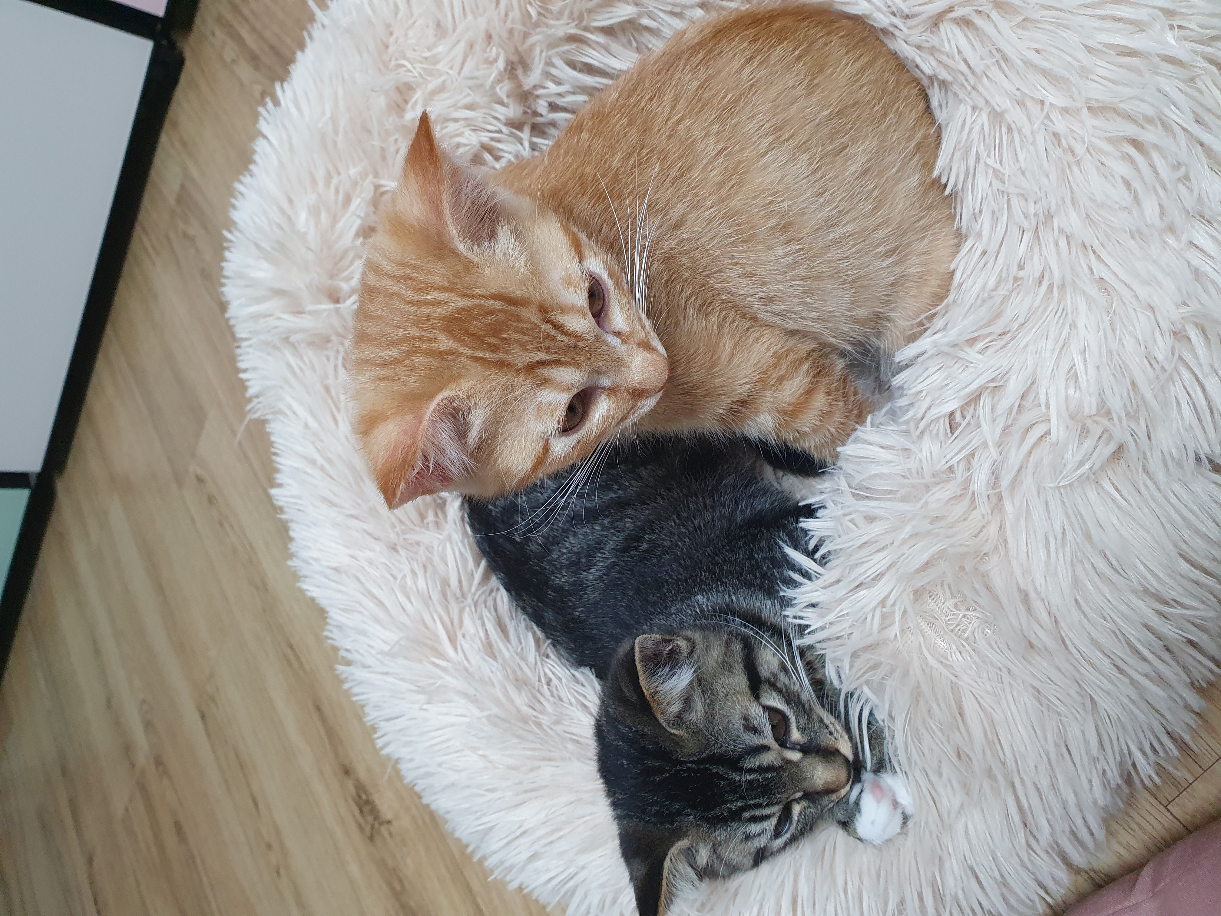 새옹이(치즈태비)와 송이(고등어태비)가 태어난 지, 105일, 3개월이 조금 넘었습니다.