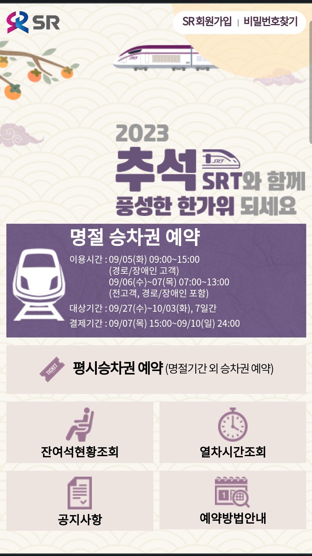 추석 srt 예매일정도 나왔군요.